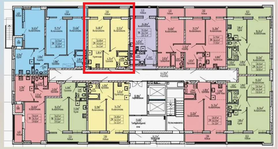 Общая площадь 40.62 м2