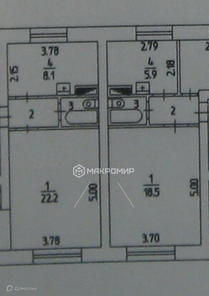 Жилая площадь 22.2 м2