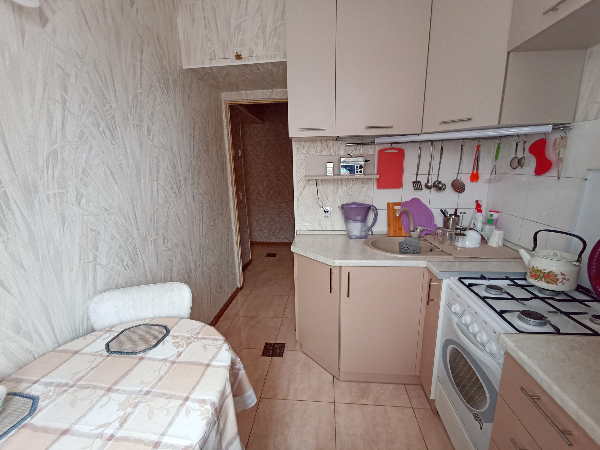 Кухня по площади хоть и небольшая, а при этом в ней достаточно хорошо организовано пространство: установлен под размер новый встроенный кухонный гарнитур.