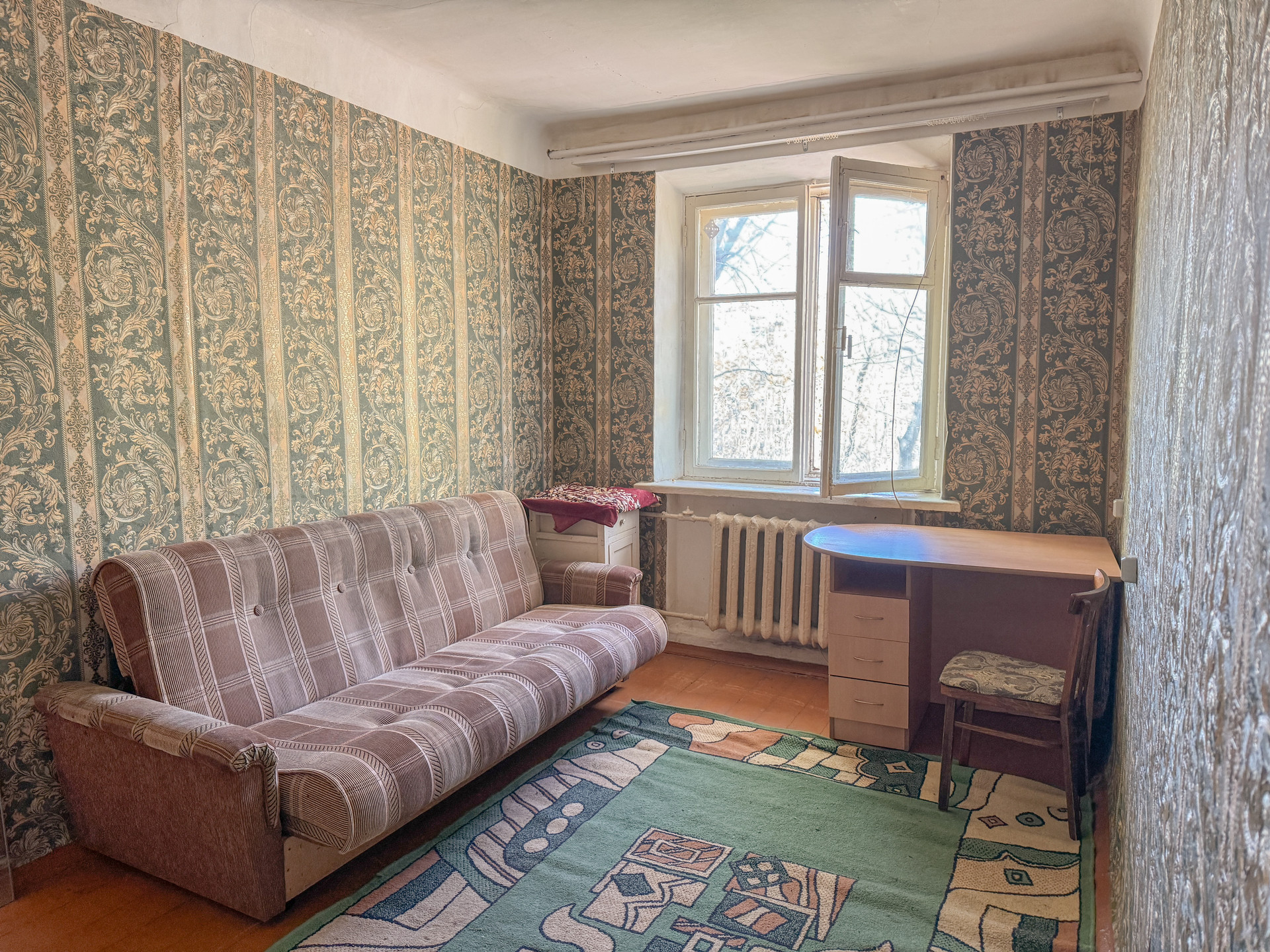 Комнаты 17кв. м и 14 кв. м, кухня 7кв м. Кухня с большим окном, стеклопакет, газовая колонка, кухонный гарнитур остается.