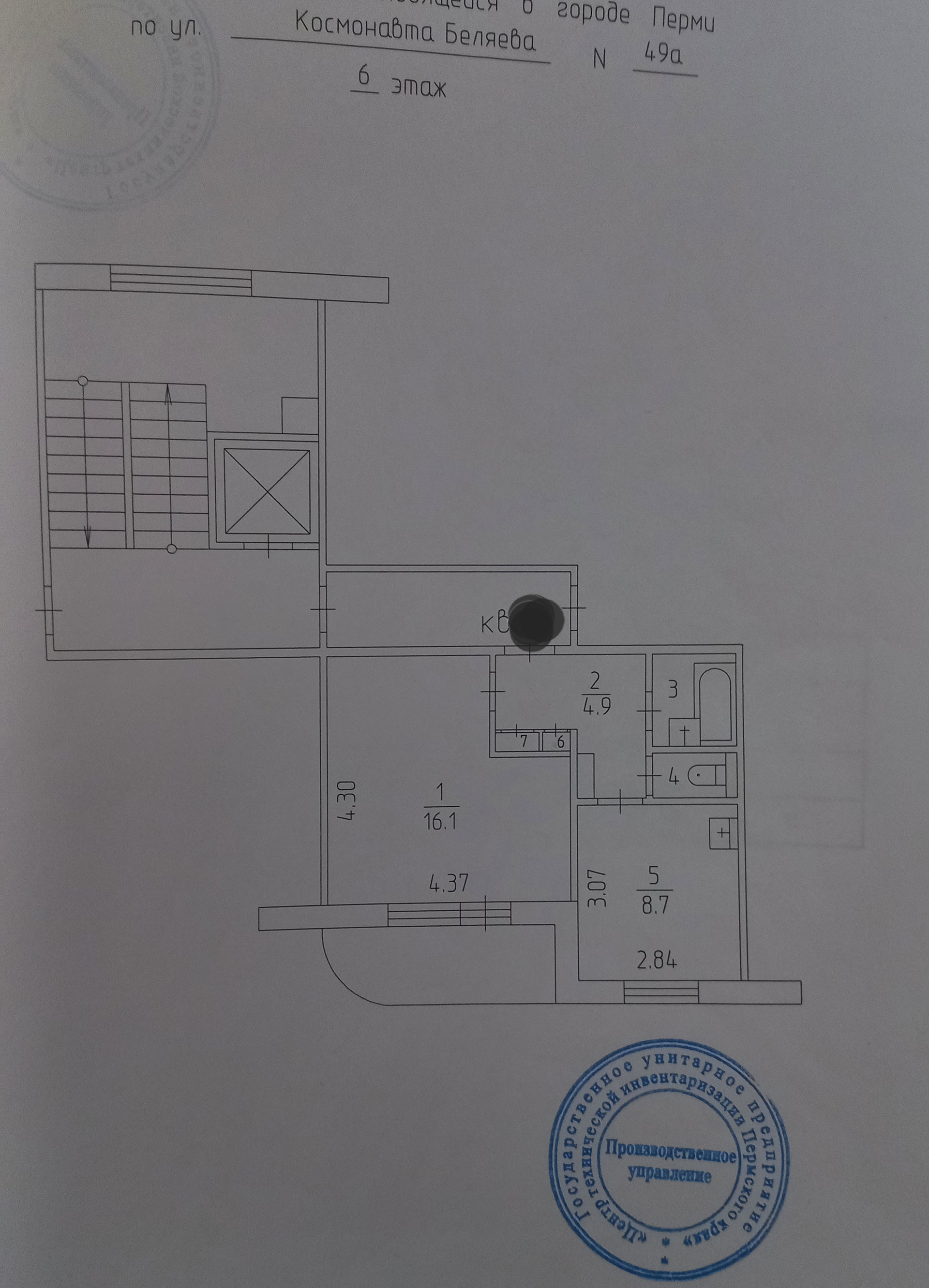 1-комнатная квартира, 34 м2, этаж 6 / 9, на продажу в Перми, улица Космонавта Беляева, 49А