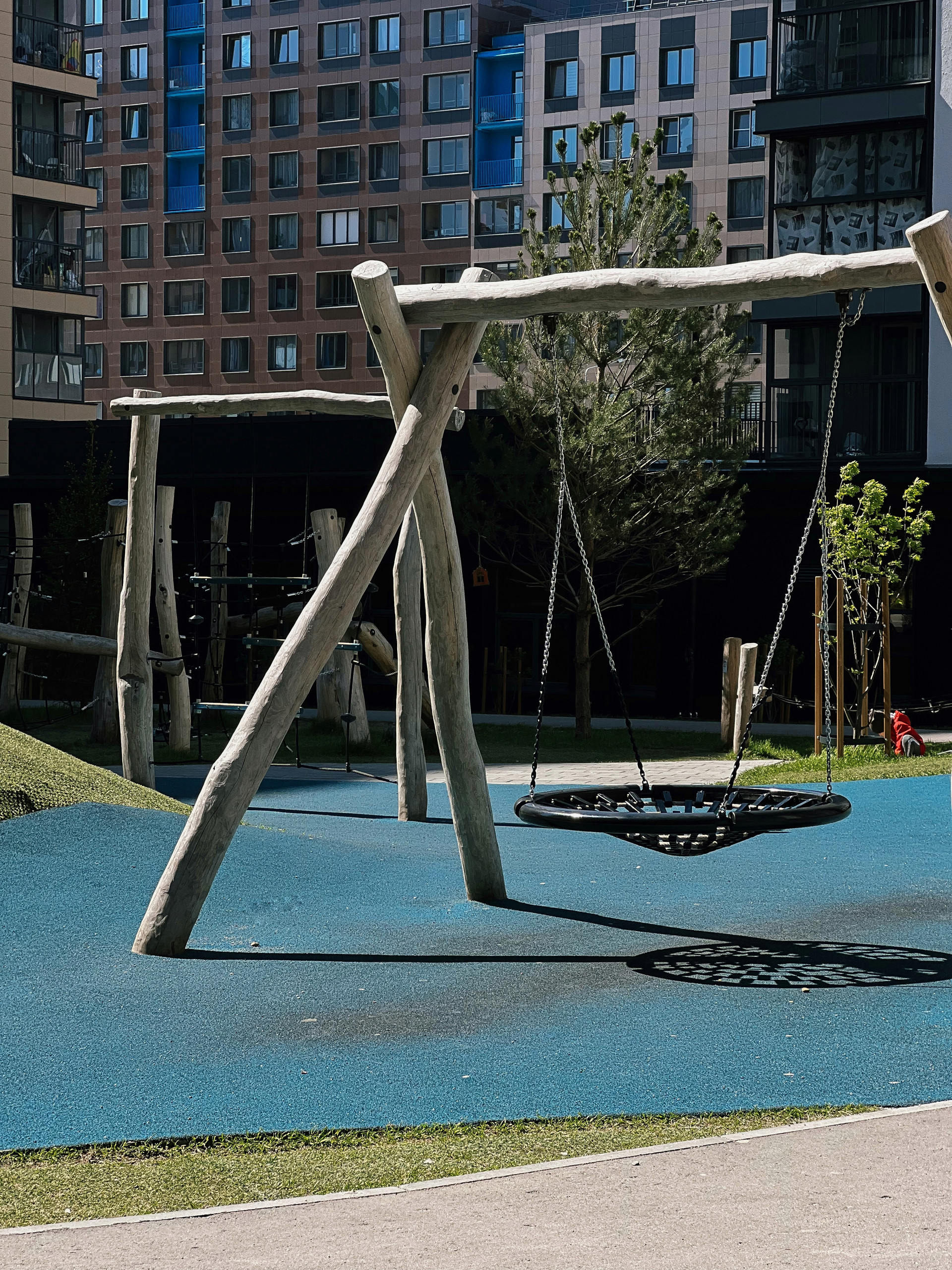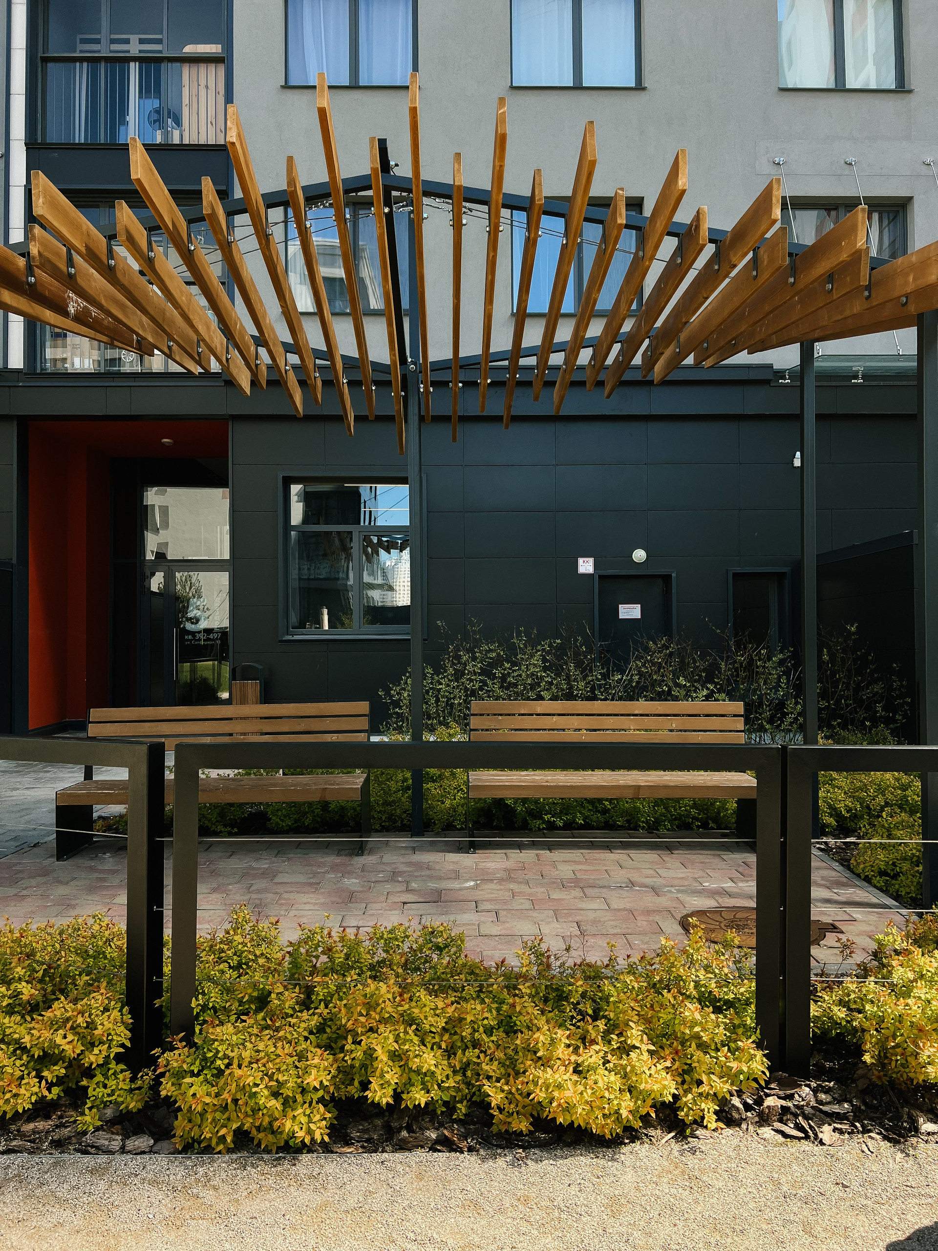 Безопасная придомовая территория: двор без машин, игровые и спортивные площадки.