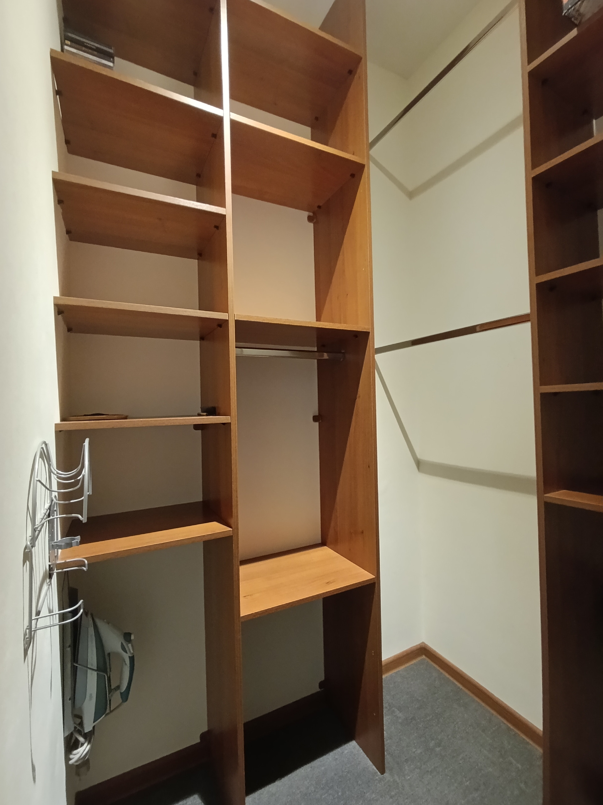 В квартире остается: кухонный гарнитур, гардеробная с системой хранения, водонагреватель.