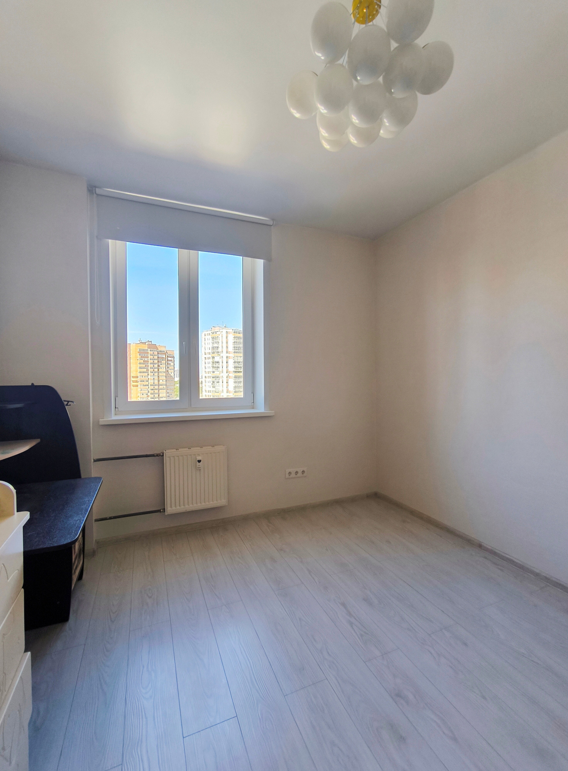 Удачная планировка: в квартире выделены три зоны – кухня-гостиная 22 кв.м, две комнаты (13,8 + 11,6); вместительная гардеробная с полками и ящиками для хранения одежды; просторный коридор, большая ванная комната. Высота потолка 2,7 м. Лоджия.
