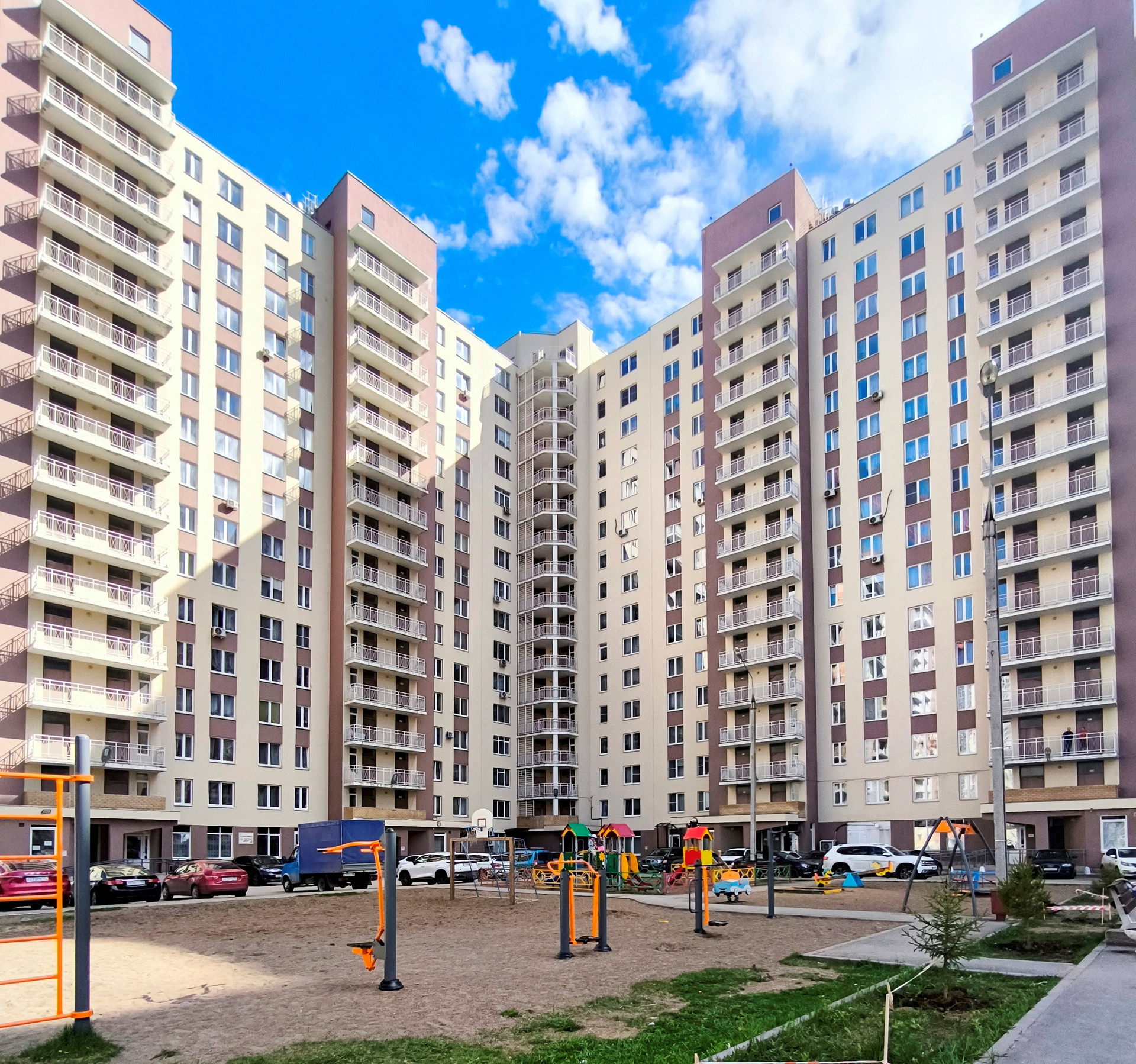 Ухоженная придомовая территория с отлично обустроенной детской и спортивной площадками.