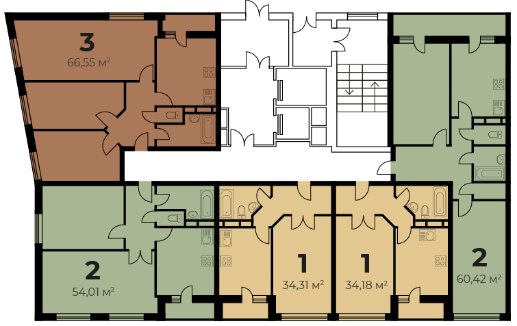 На этаже расположено 5 квартир.