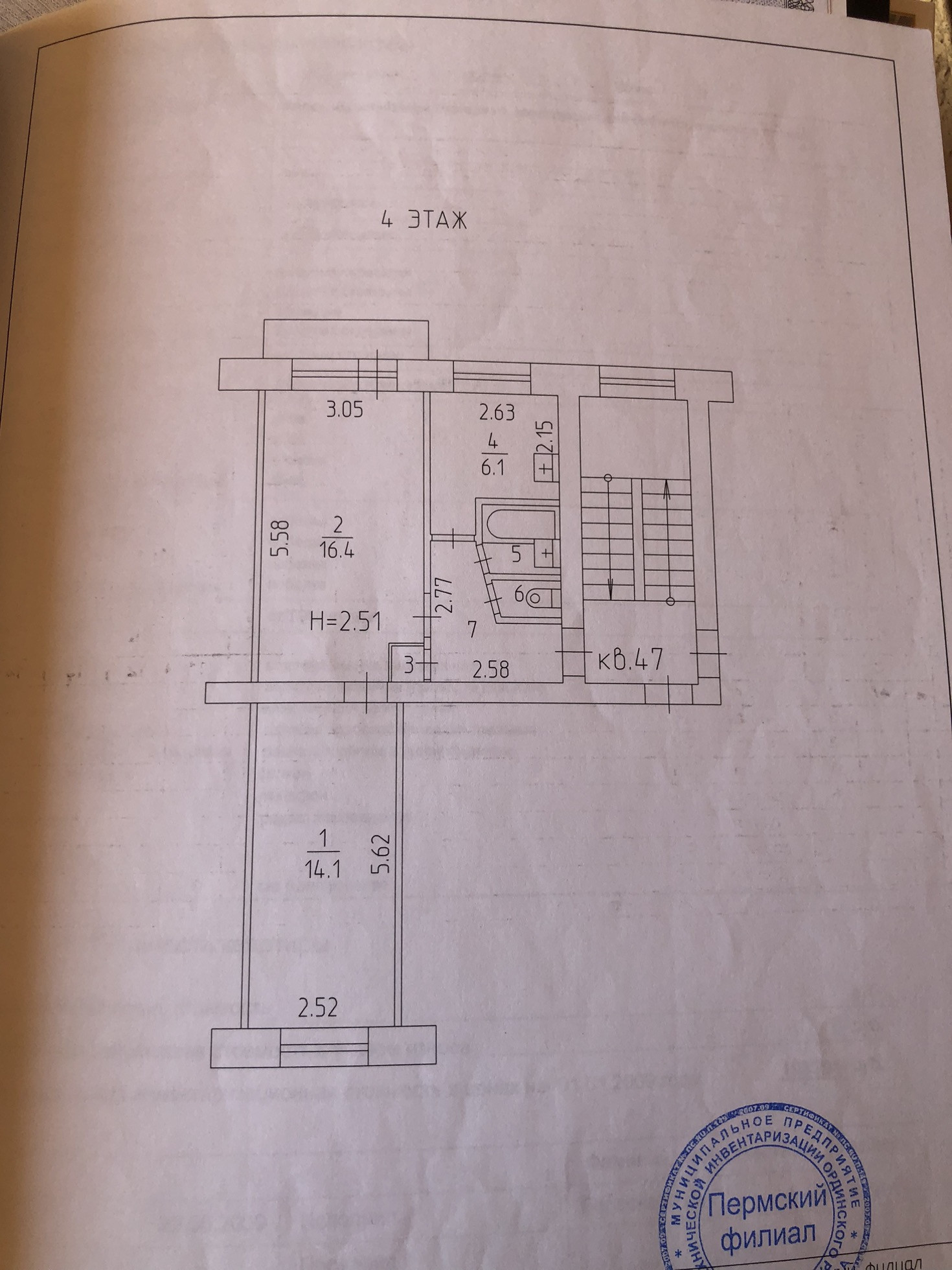 Общая площадь 44.3 м2