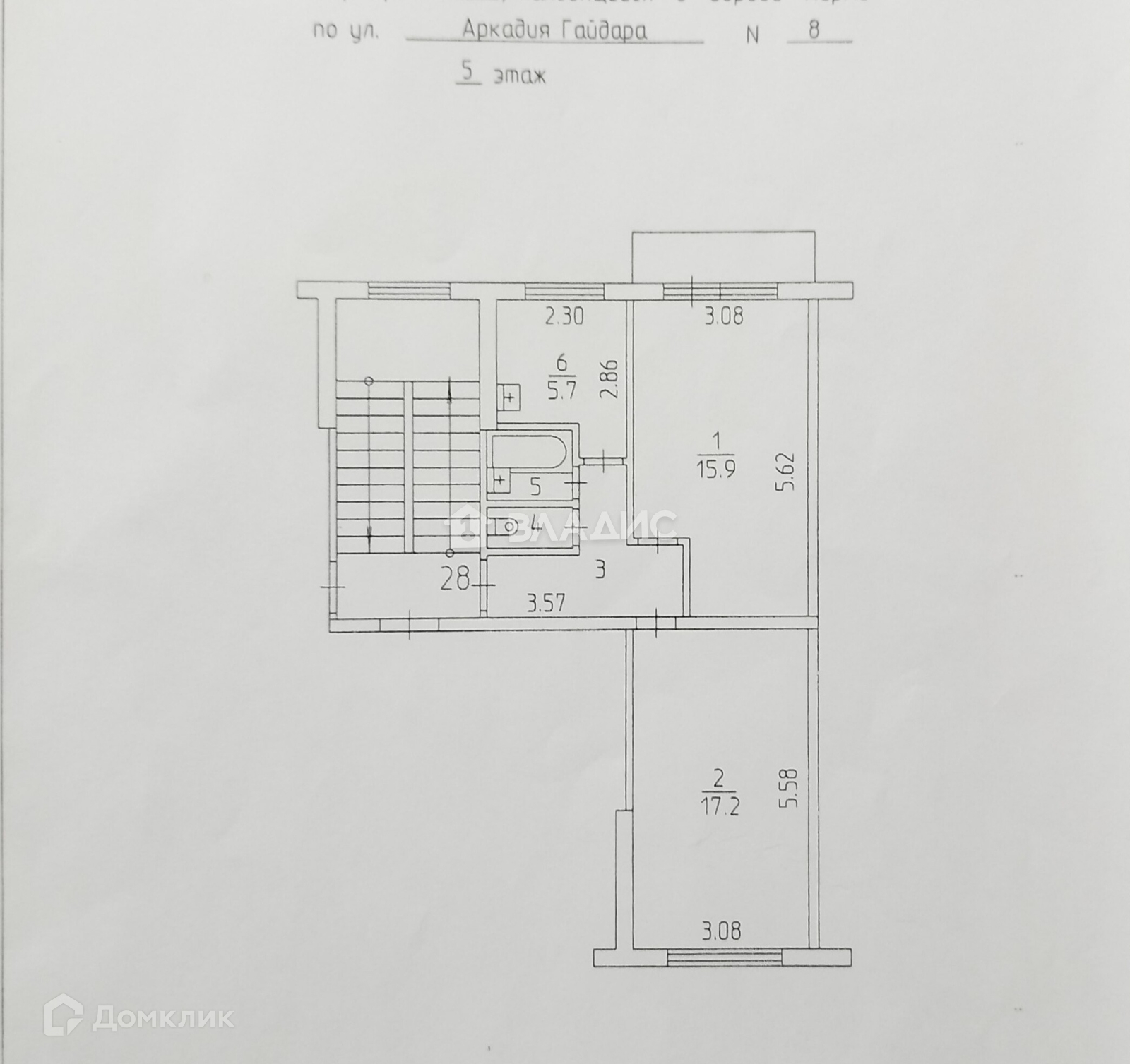 2-комнатная квартира, 47.7 м2, этаж 5 / 5, на продажу в Перми, улица Аркадия Гайдара, 8