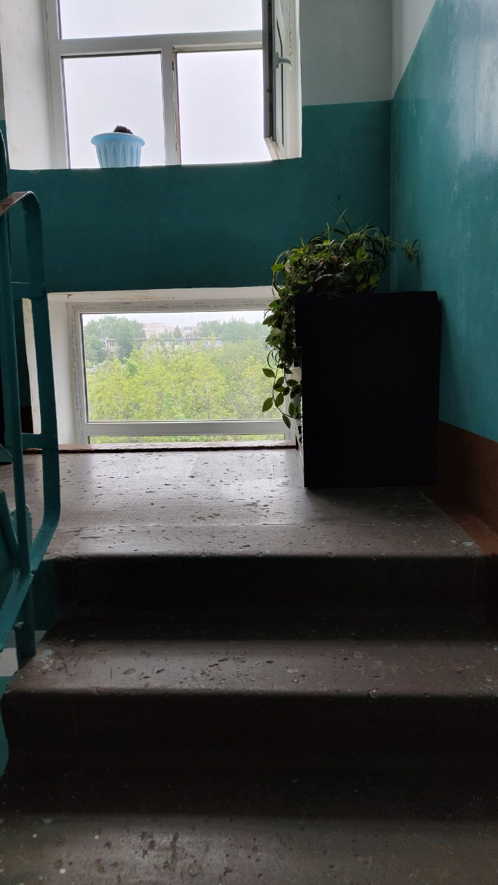 У дома и в подъезде чисто, заменены стеклопакеты, во дворе проложен свежий асфальт, отремонтирована крыша, паркинг.