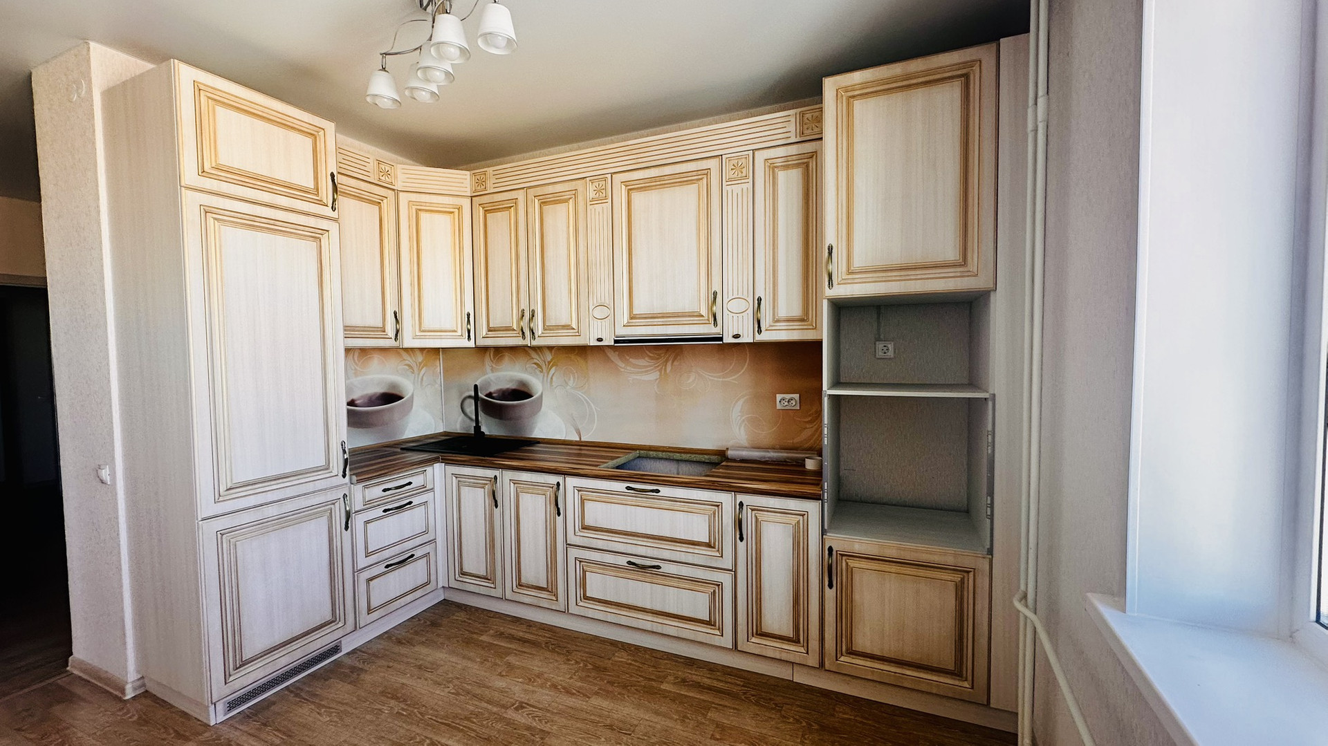 В квартире установлен качественный кухонный гарнитур, выполненный на заказ в классическом стиле и с нишами для встроенной бытовой техники (установлена вытяжка и каменная раковина). В коридоре установлен вместительный шкаф-купе 4-х створчатый с зеркальными дверями и в прихожей установлен 2-х створчатый шкаф для верхней одежды и прихожая. В спальне установлен шкаф-купе. Заменена качественная входная дверь. Раздельный санузел: в туалете на полу и стенах кафельная плитка, установлена дополнительно раковина, в ванной комнате на полу и стенах кафельная плитка, установлена каменная столешница под раковину и нишей для стиральной машины.