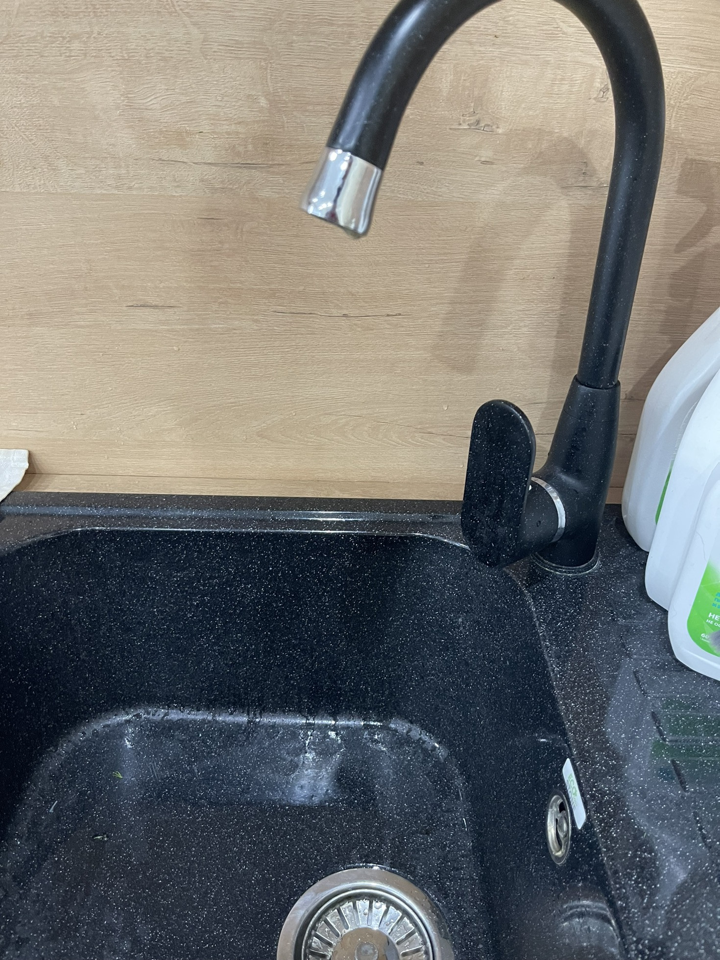 Гарнитур в отличном состоянии с новой раковиной и смесителем.