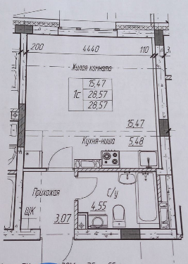 Общая площадь 28.6 м2
