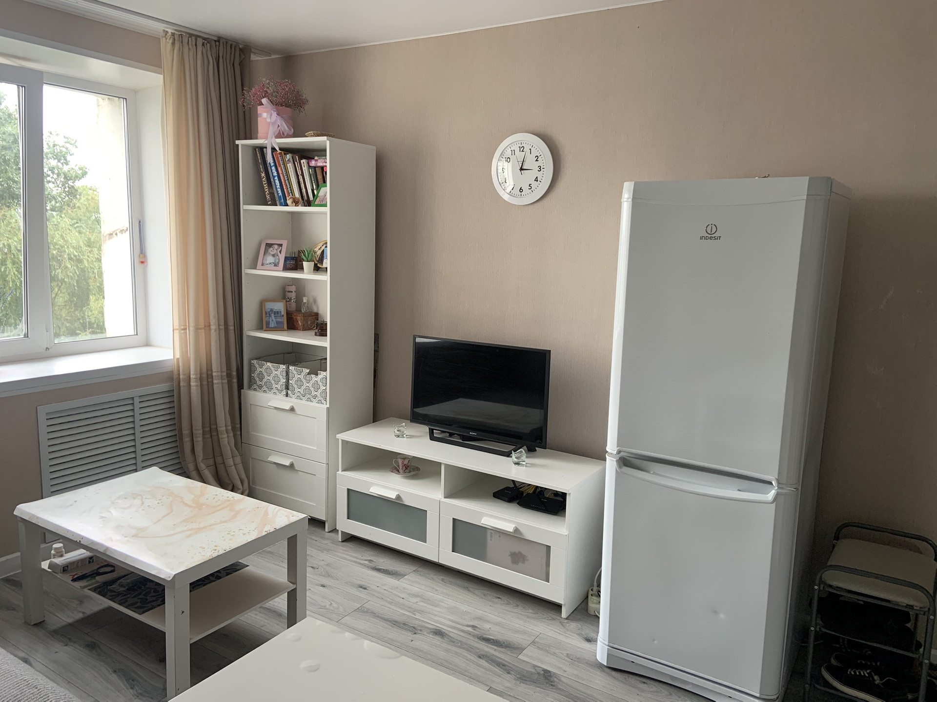 Квартира после капитального ремонта: заменена электрика, стены выровнены, на полу ламинат, натяжной потолок. Собственный сан-узел и зона кухни.