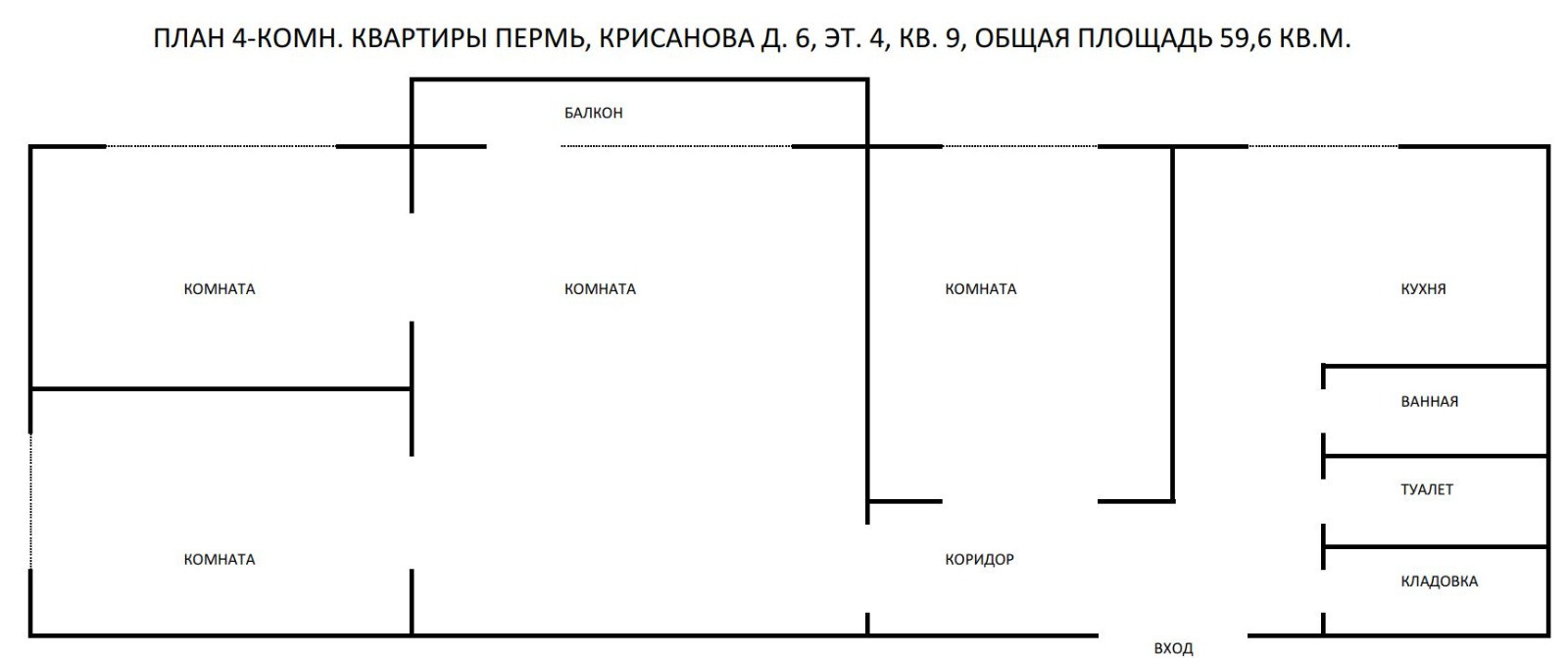 4-комнатная квартира, 59.6 м2, этаж 4 / 5, на продажу в Перми, улица Крисанова, 6