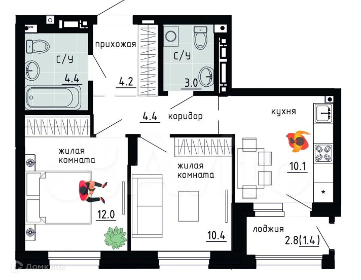 В доме представлены уникальные форматы квартир с: