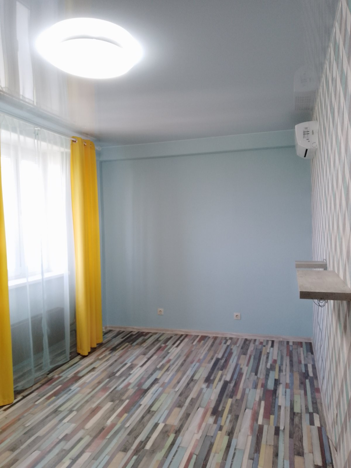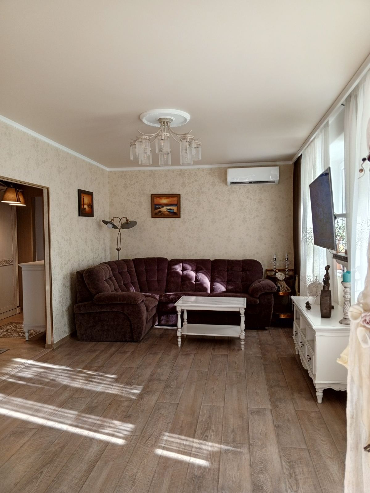 Окно одной комнаты выходит на юг, все остальные на запад. Во всех комнатах установлены кондиционеры. Пол кухня, ванная, коридор и балкон – керамогранит. В ванной комнате и на кухне теплые полы. В комнатах ламинат. Во всей квартире натяжной потолок с точечными светильниками, с разными сценариями освещения.