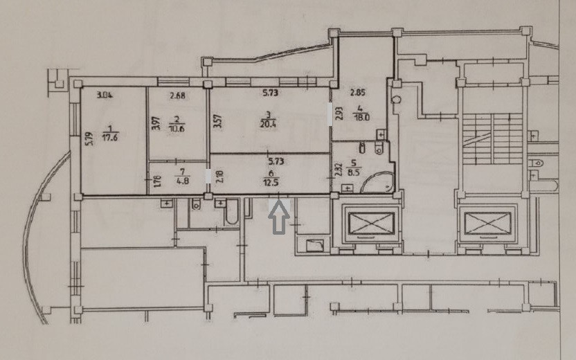 Общая площадь квартиры (92,4) кв.м. Планировка квартиры смежно-изолированная: две изолированных спальных комнаты (17,6+10,6)кв.м., просторная гостиная (20,4) кв.м. с выходом на застекленный балкон (5) кв.м. и кухню (18) кв.м., большая ванная комната (8,5) кв.м., коридор (17,3) кв.м.