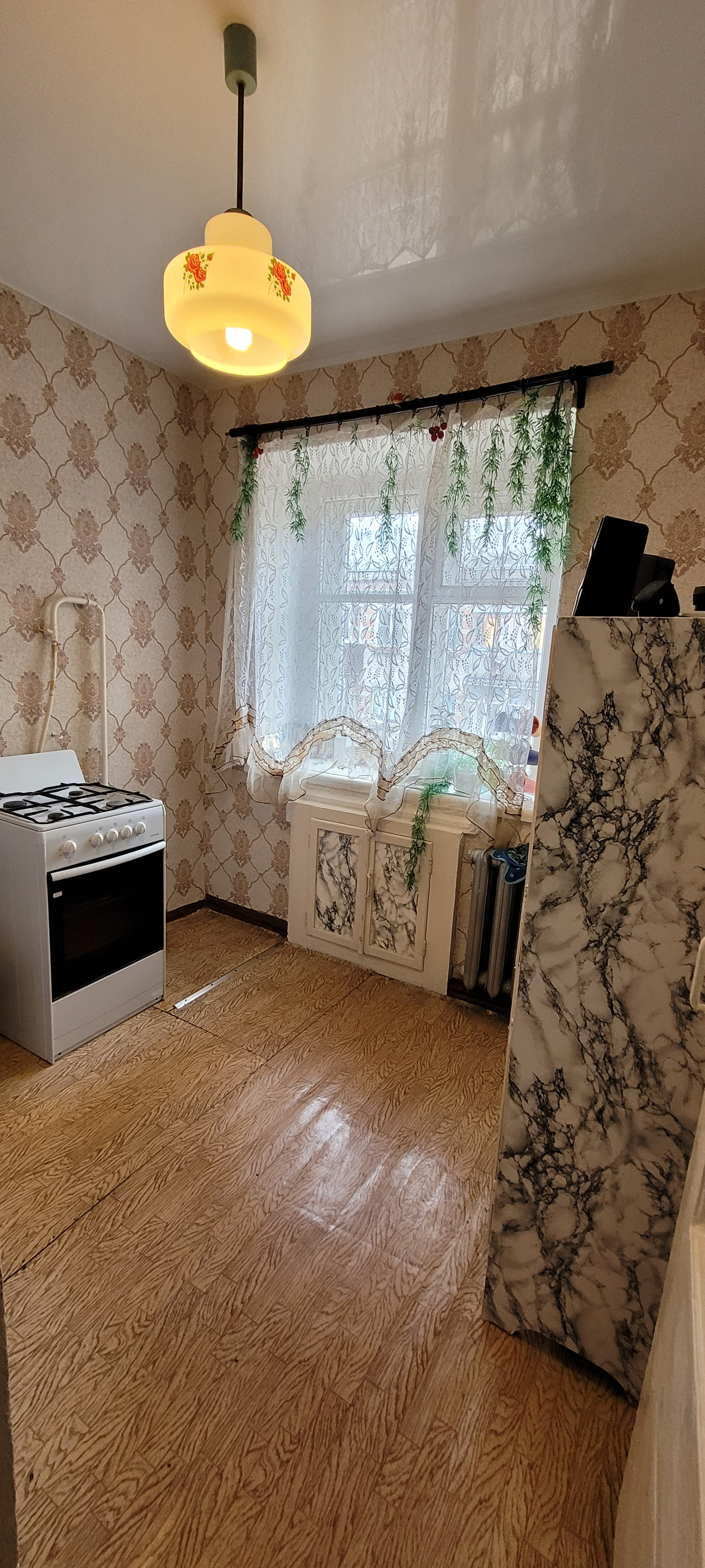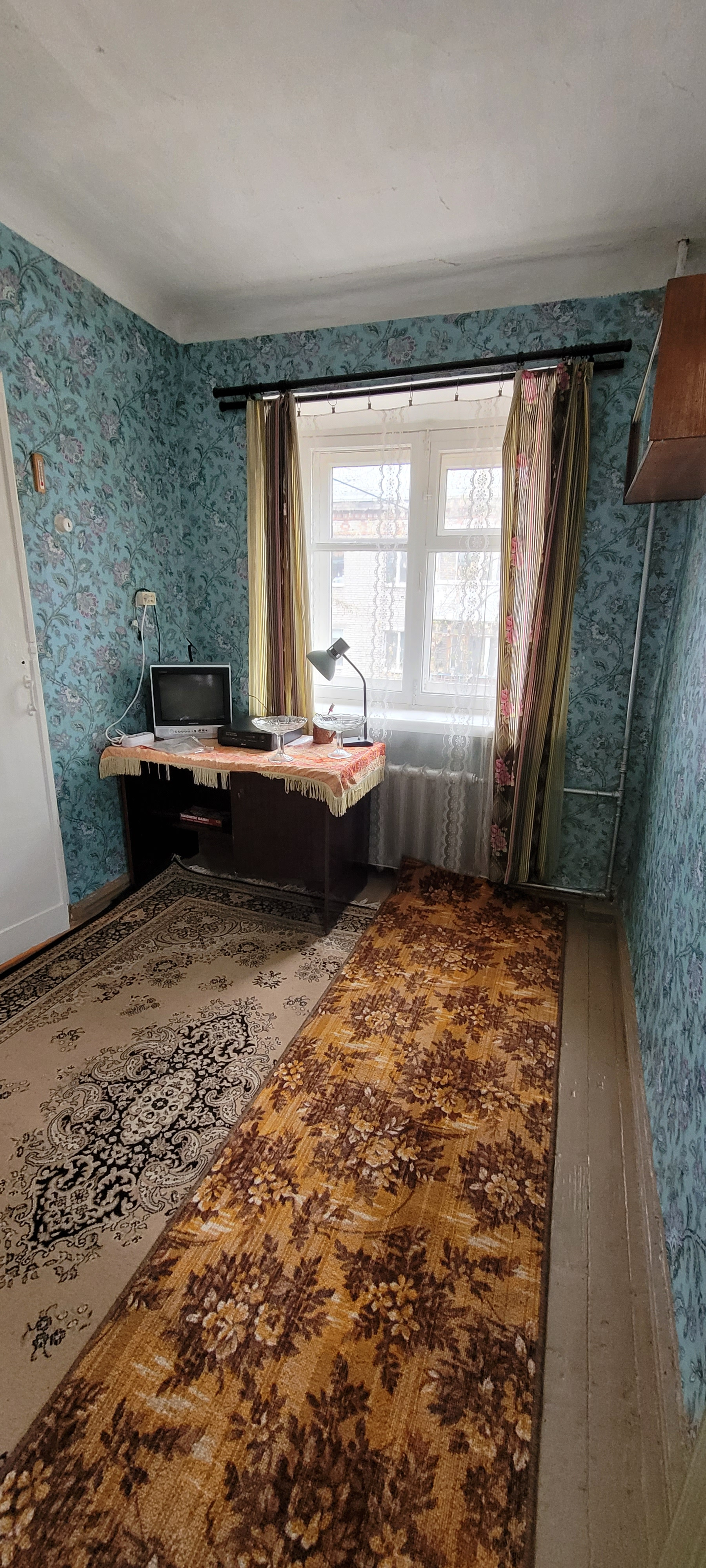 Теплая, уютная 2-х комнатная квартира в добротном кирпичном доме Хрущевского типа с 2-х скатной крышей. Состояние квартиры простое.  Чистая и в отношении гигиены и в отношении юридическом. Квартира всегда принадлежала одной семье.1 взрослый собственник, более 5 лет. Прописанных и проживающих нет. Без долгов и обременений. Косметический ремонт был: потолки нятяжные в санузле и кухне; линолеум в кухне и в прихожей, обои поменяны, сантехника и трубы поменяны, ванна обновлена, входная дверь двойная. Остановка рядом. Школа, магазины, почта тоже. Звоните в любое время, покажу по доверенности. Перезвоню, если не смогла взять трубку.