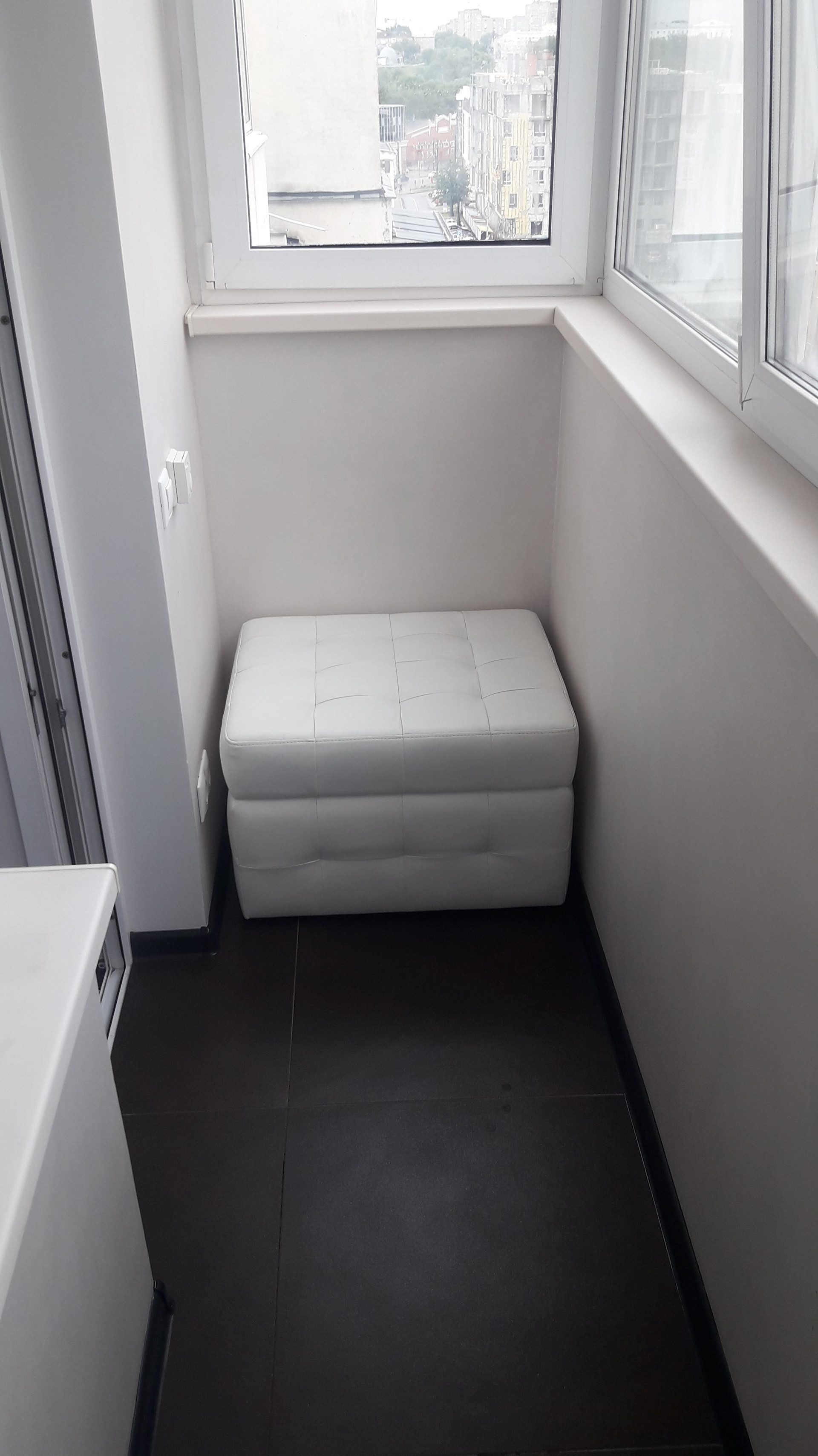 На балконе теплый пол, освещение, встроенный шкаф.