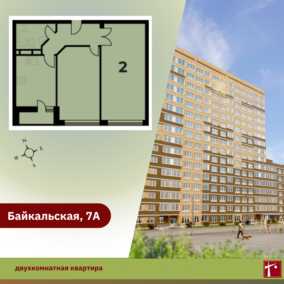 Квартиры на Байкальской, 7А с полной строительной отделкой: обои на стенах, линолеум на полу, натяжные потолки, сантехника установлена, приборы учета на ГВС, ХВС, электричество, отопление, входные двери – металлические, межкомнатные – ламинированные, на кухне – электроплиты, детские замки на окнах.