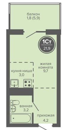 Общая площадь 25 м2