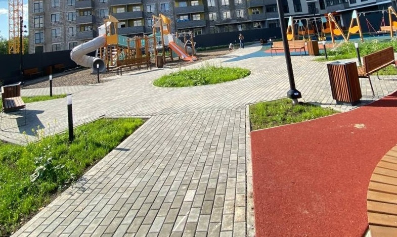 Придомовая территория: двор без машин, огороженная территория с видеонаблюдением, для автомобилей организована отдельная парковка.
