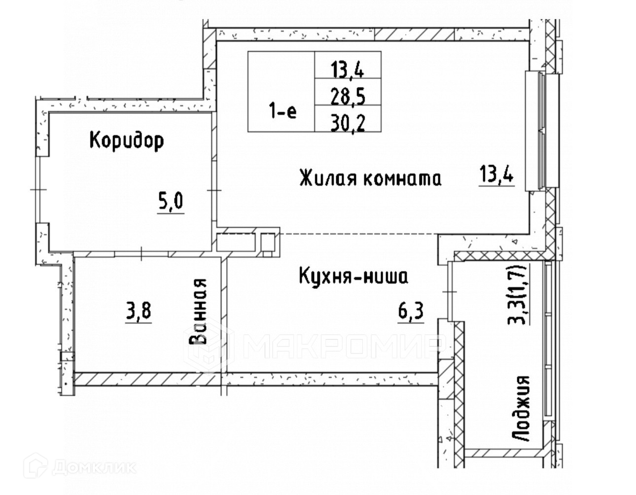 Общая площадь 28.4 м2