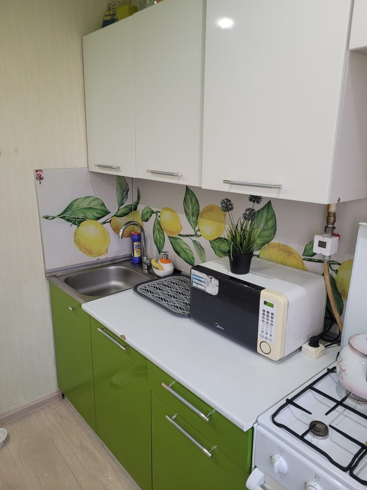 Две комнаты изолированы на разные стороны, есть кладовка используется, как шкаф. Балкон застеклен и утеплен обшит сайдингом, установлены стеклопакеты. Ремонт частично сделан в прихожей в маленькой комнатке и на кухне натяжной потолок. Счетчик установлены- электричество, горячая, холодная вода. Стяжка полов сделана утеплена, линолеум в комнатах (13,4 кв.м.+17,1кв.м.) , стеклопакеты везде установлены, хорошая входная дверь.