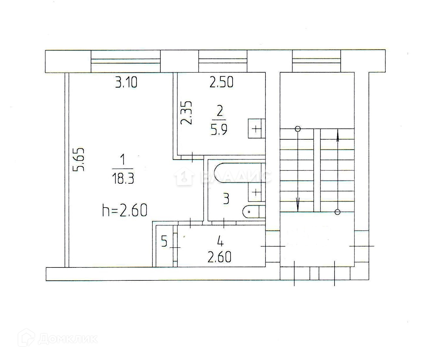 Высота потолков 2.6 м