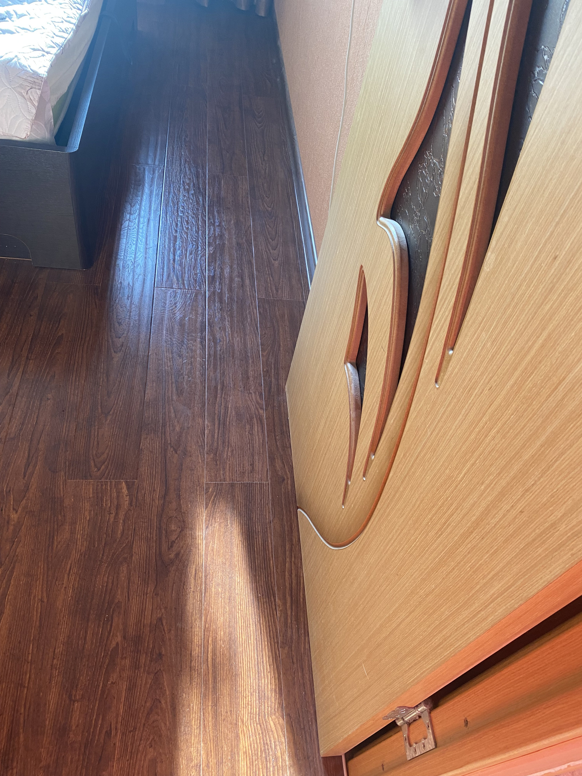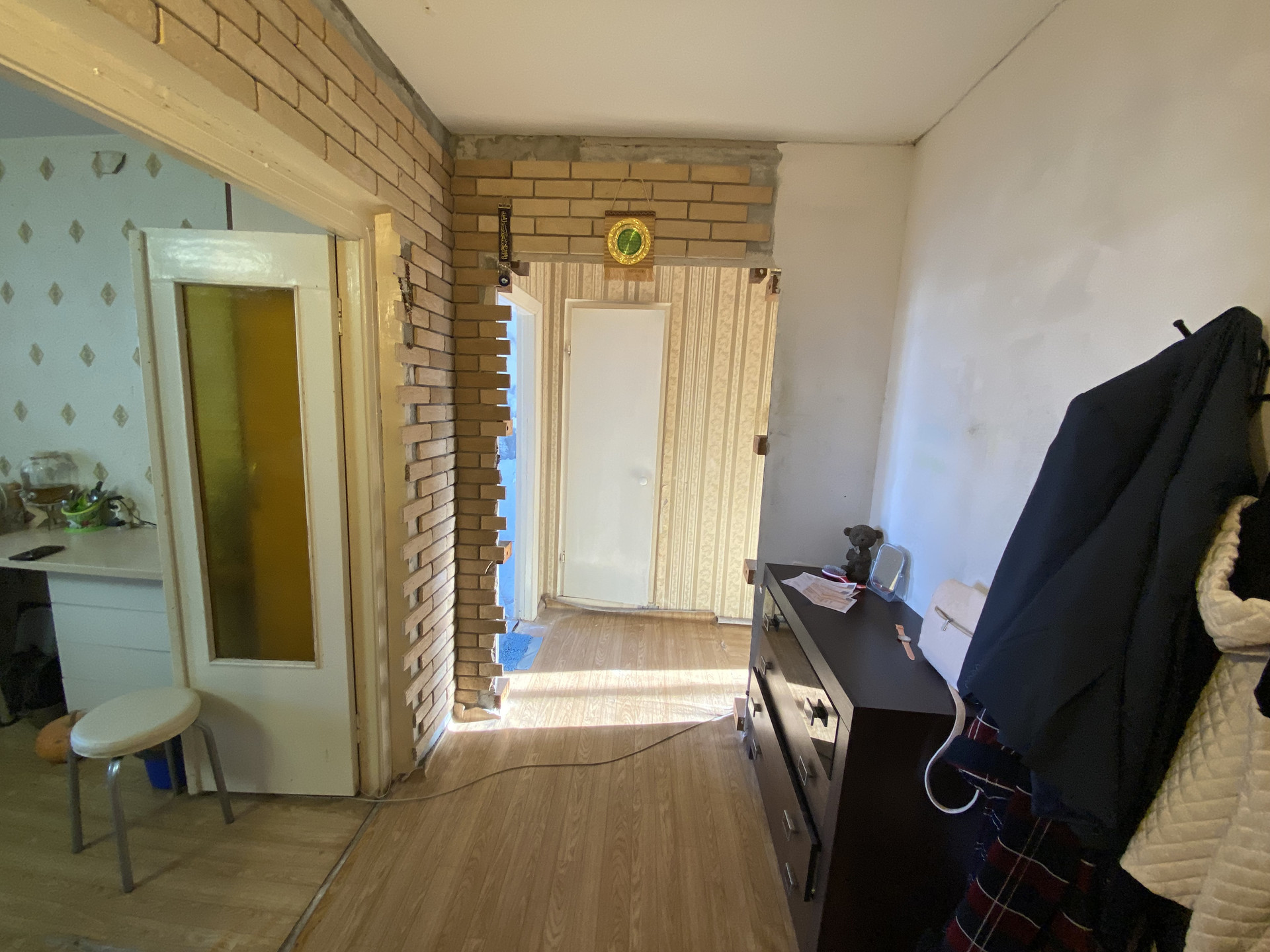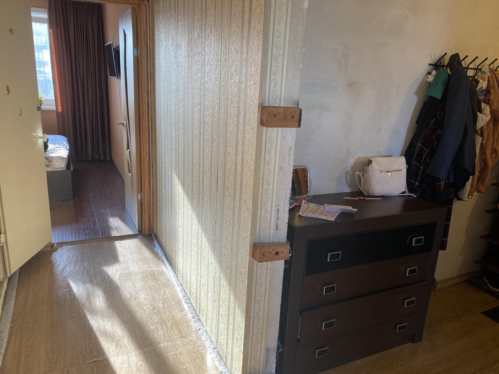 Выполнен ремонт в спальне, на кухне - предчистовая отделка, в остальных местах состояние хорошее.