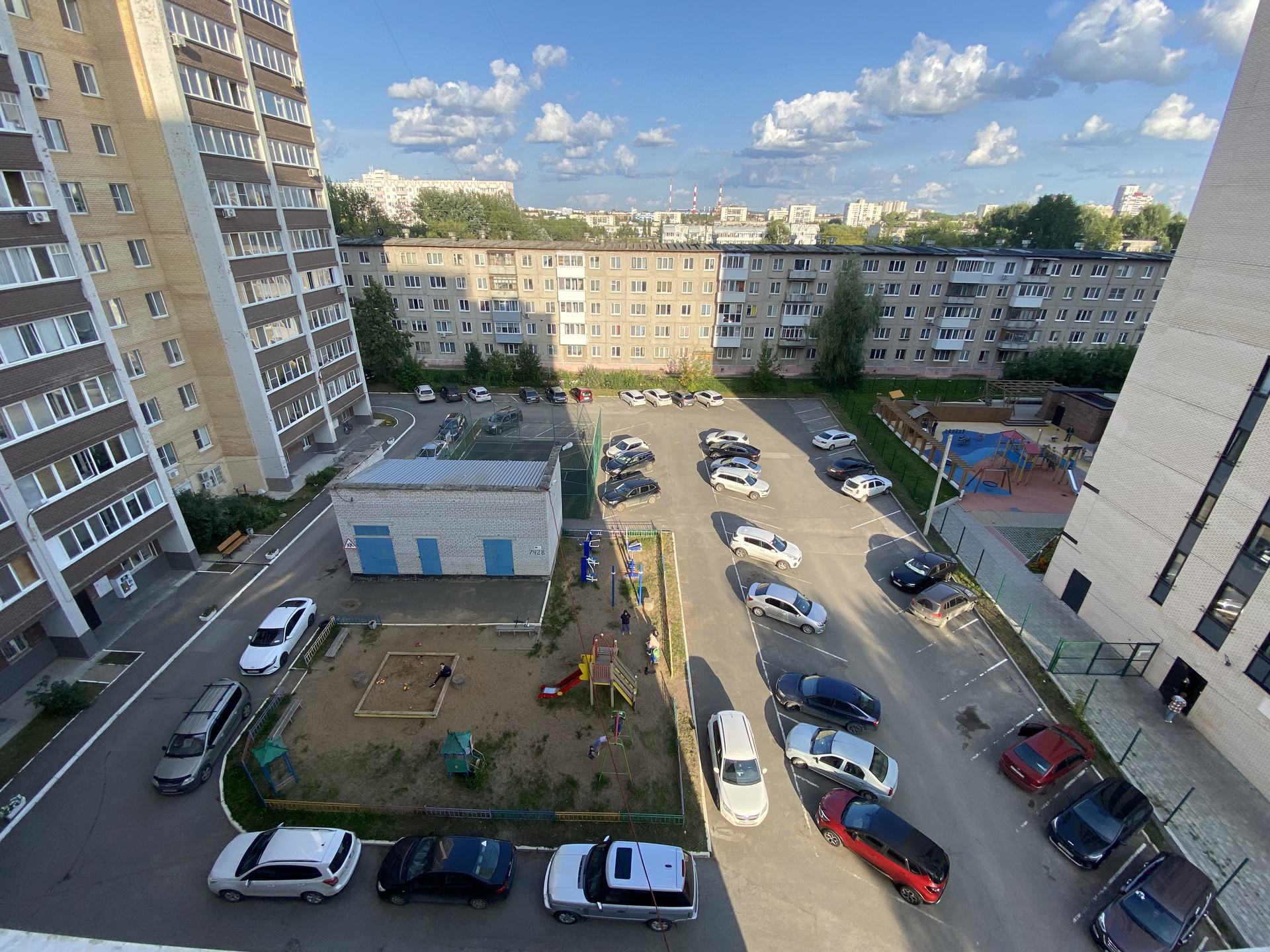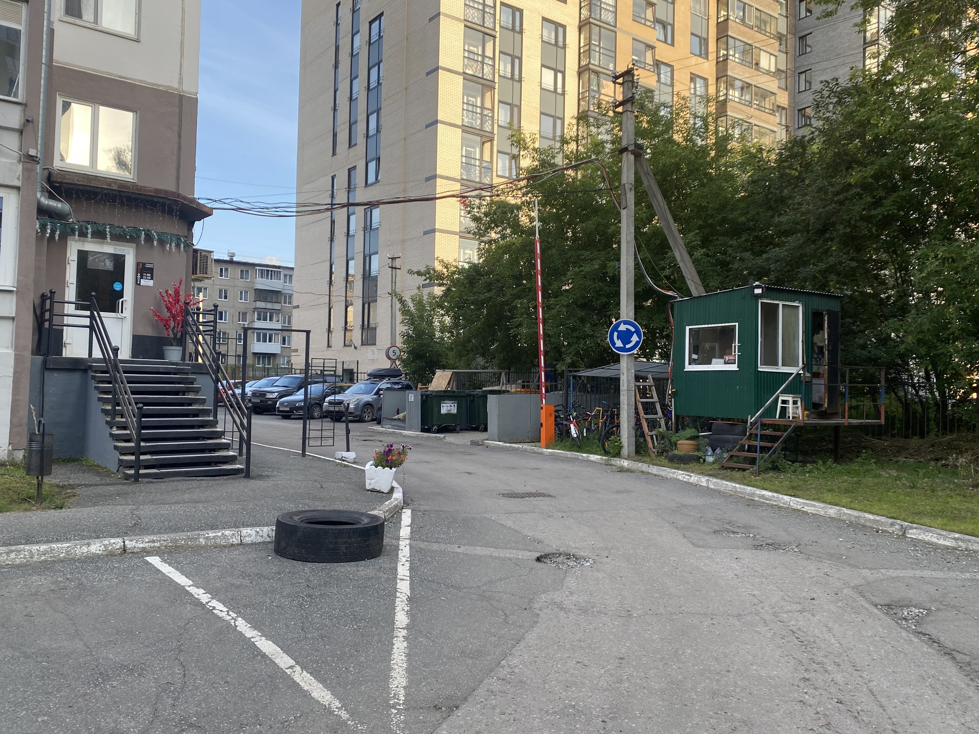 Въезд на придомовую территорию через шлагбаум, работает охрана, всегда имеются парковочные места.