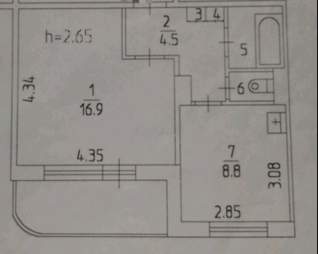 Балкон, лоджия 1 балкон