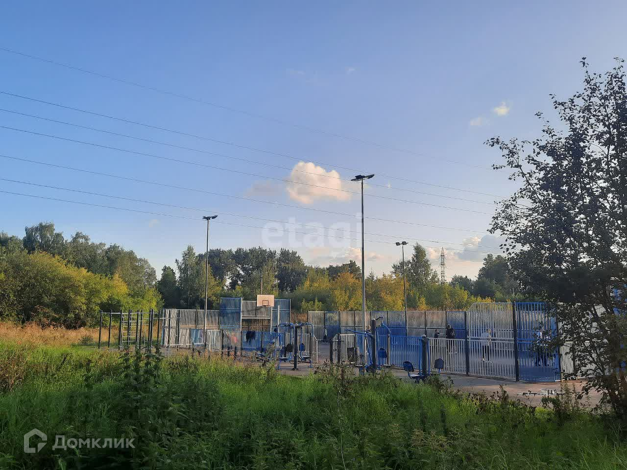 Около дома установлена спортивная площадка,огорожена забором.