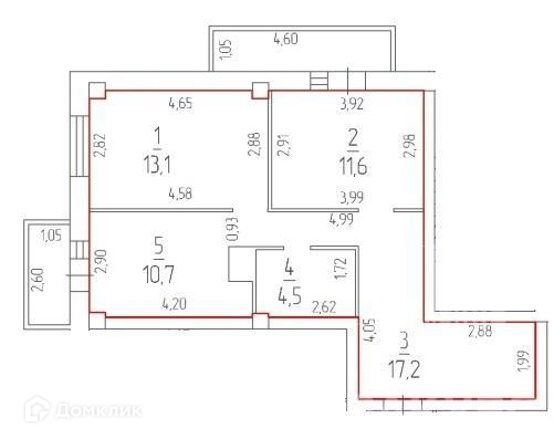 Общая площадь 57.1 м2