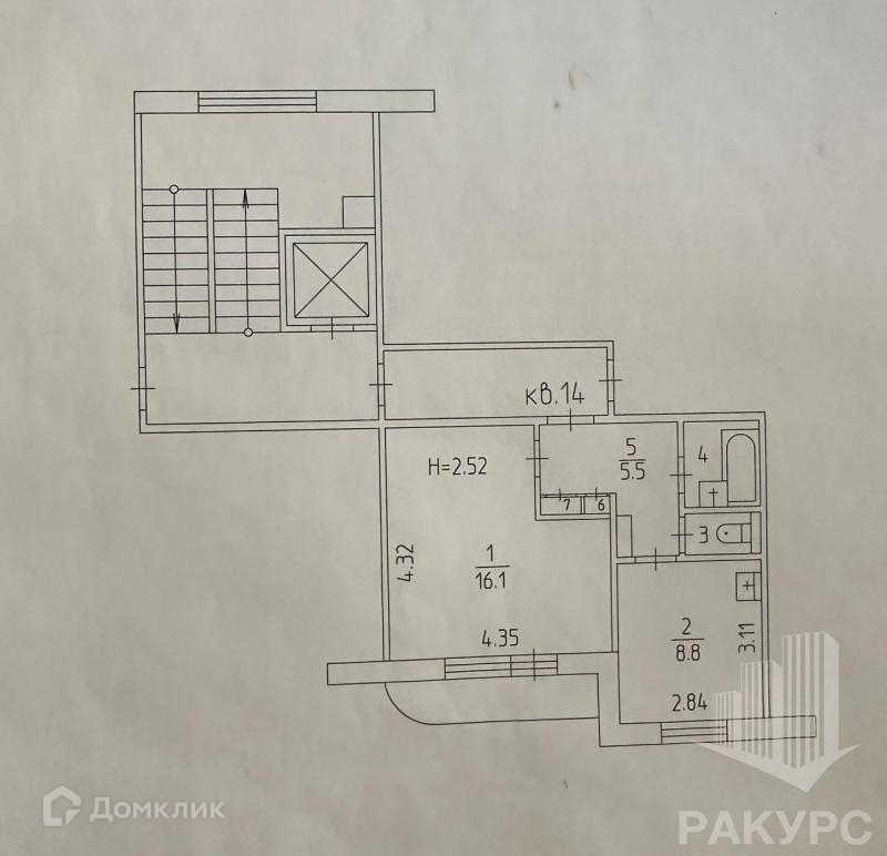 Жилая площадь 16.1 м2