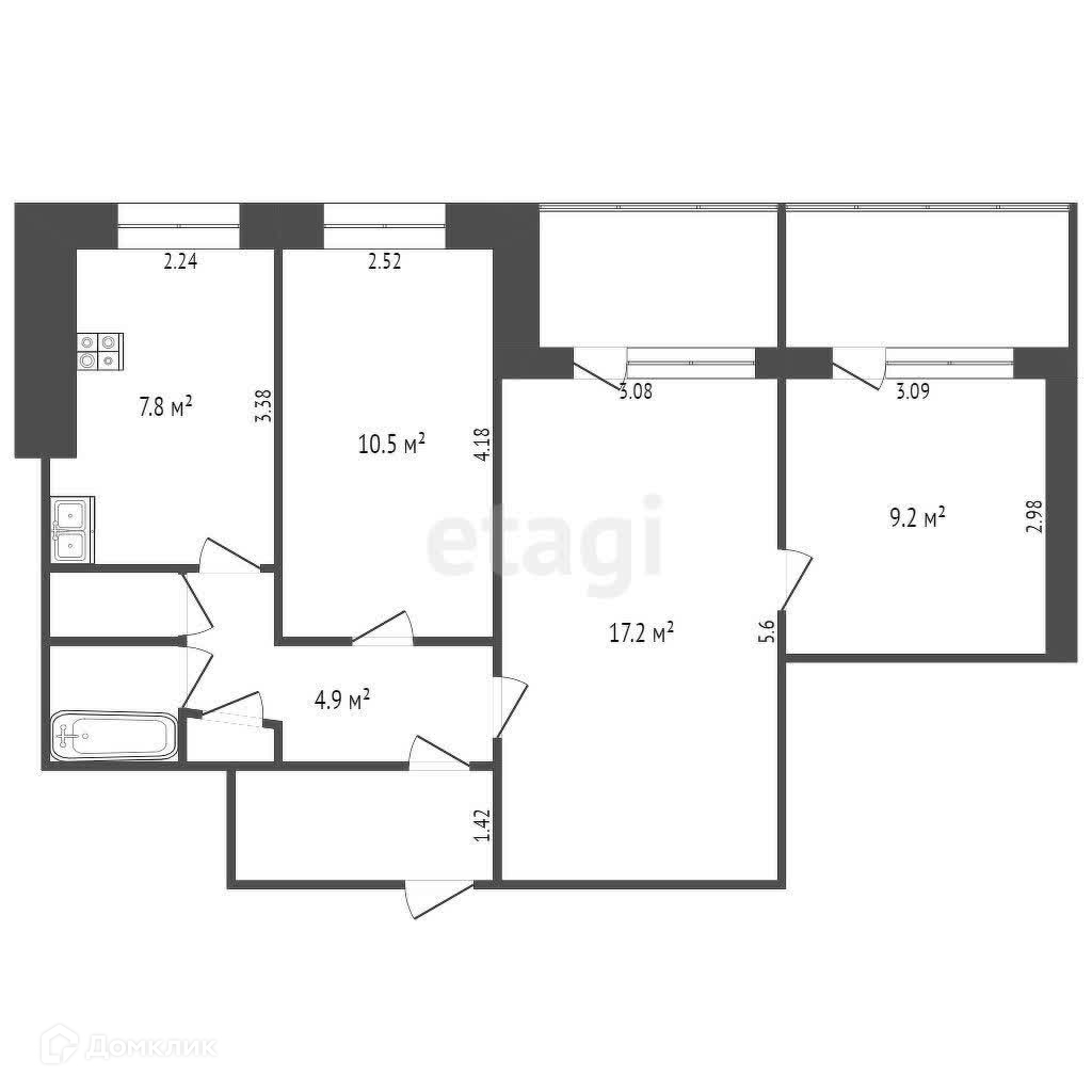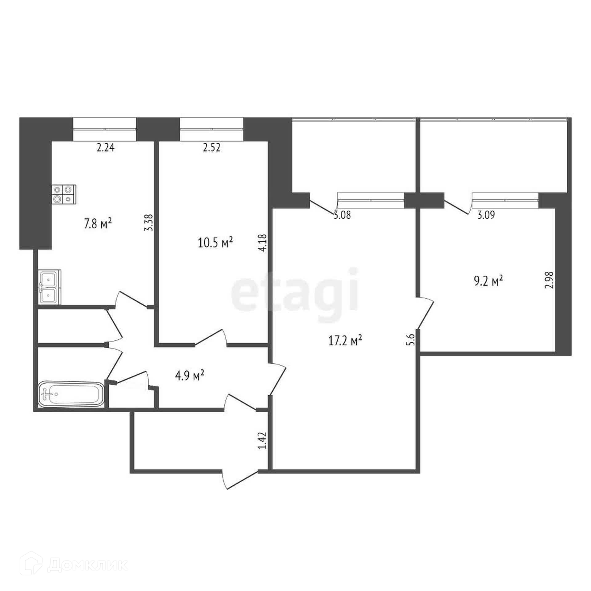 Общая площадь 53.2 м2