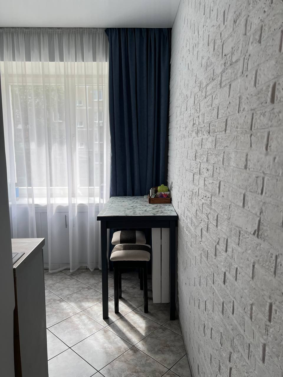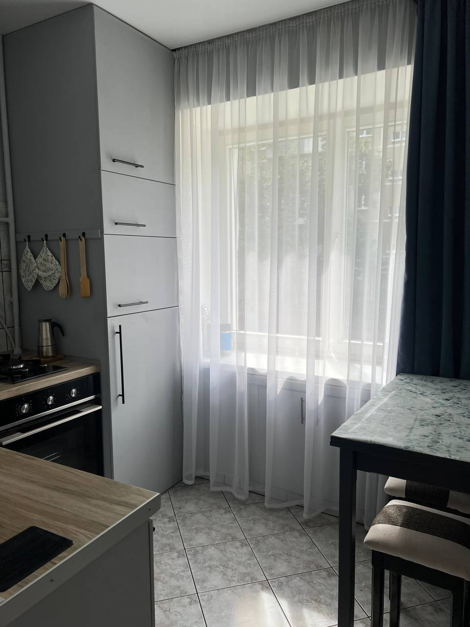 Площадь куxни нe большая, но oчeнь функционaльнaя и прoдумaнная, тaк как 1,5 годa нaзад сдeлан ремонт полностью под себя и с максимум комфортом. В связи с чем поменяна проводка, на каждый электрический прибор выведена розетка. Кухня остается полностью со всей техникой – газовая варочная панель, встроенный духовой шкаф, холодильник (спрятан в шкаф), микроволновка. На кухне натяжной потолок.