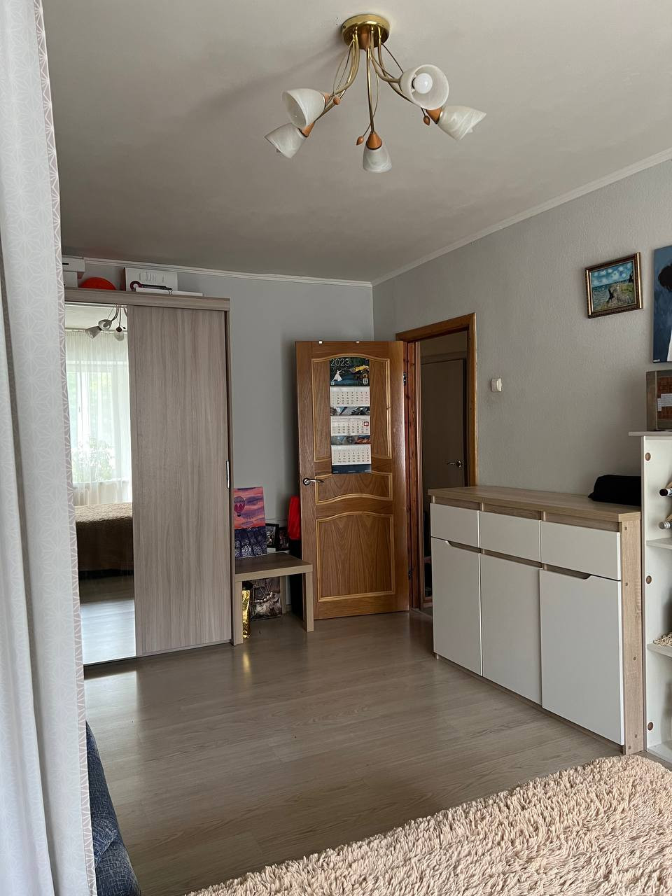 В комнате ламинат, в коридоре и кухне плитка.