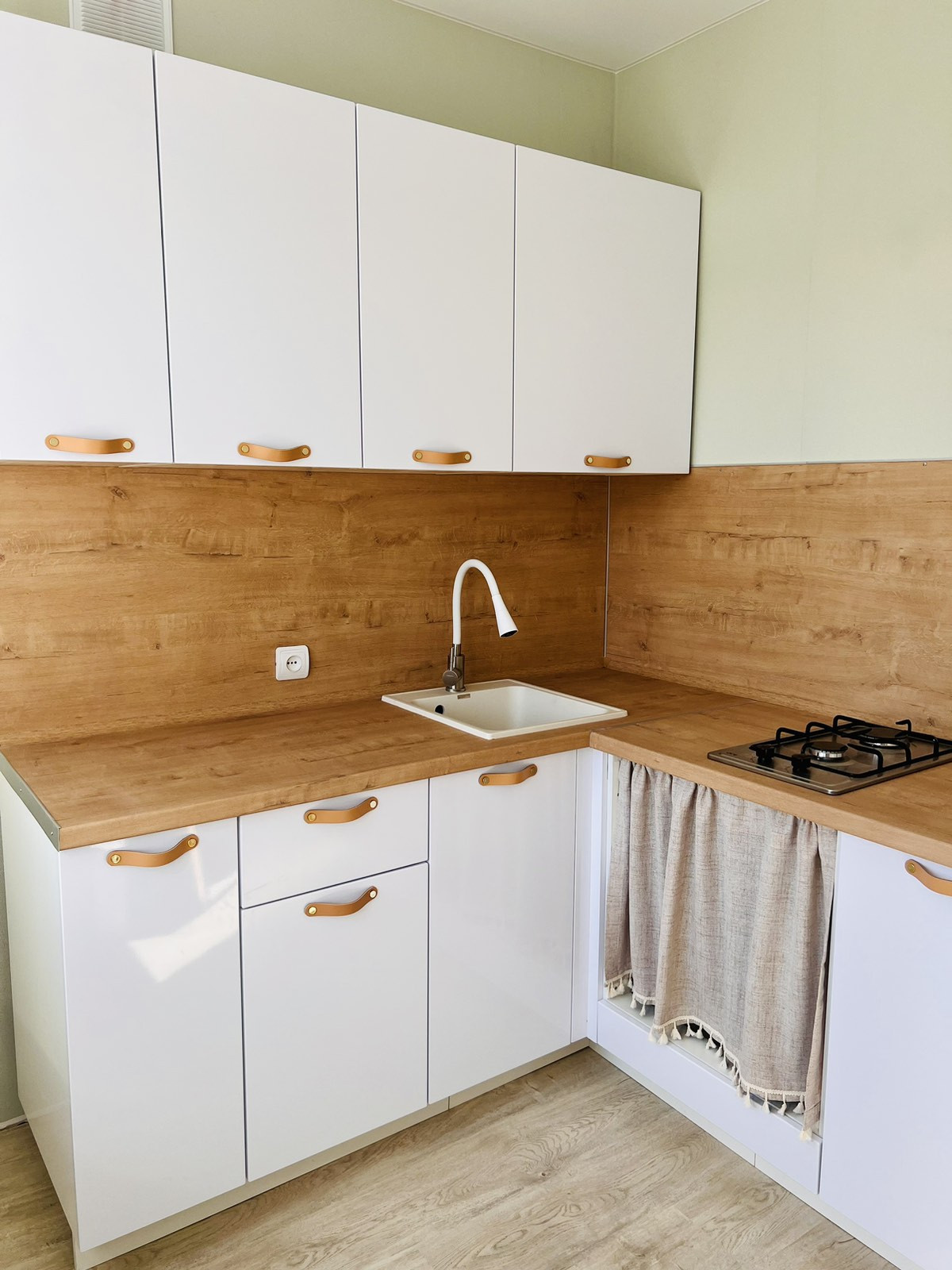 Делали с привлечением дизайнера, все в спокойных светлых тонах для расширения пространства.