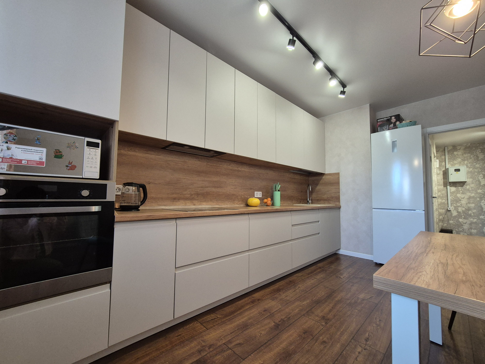 - заменена электрика на кухне, в сан узле и в коридоре;