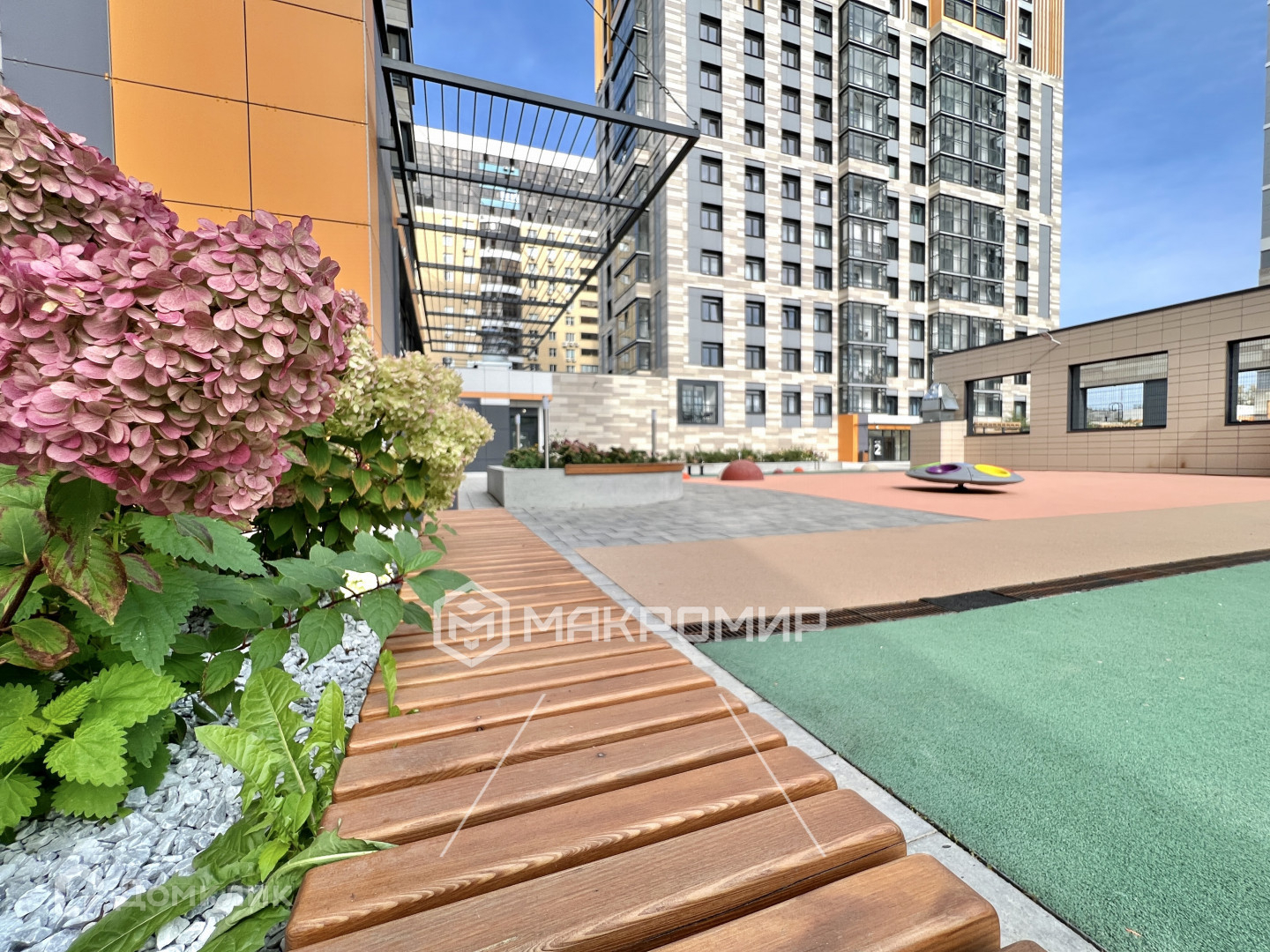 Во дворе дома созданы площадки для игр детей, занятий спортом, отдыха и прогулок.