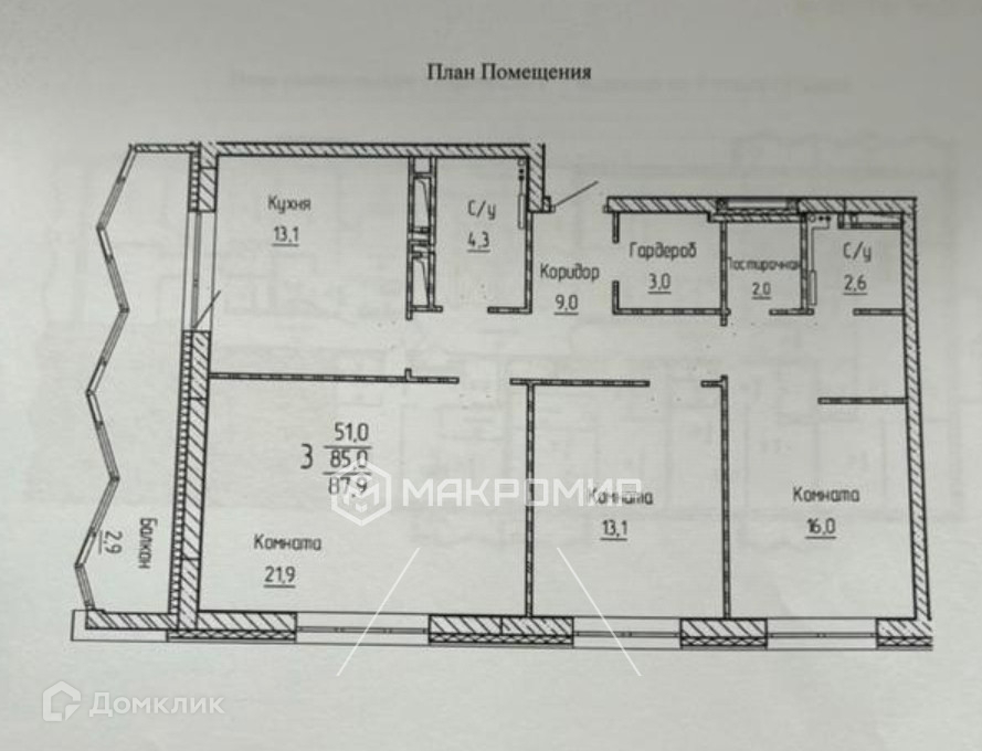 Жилая площадь 51 м2