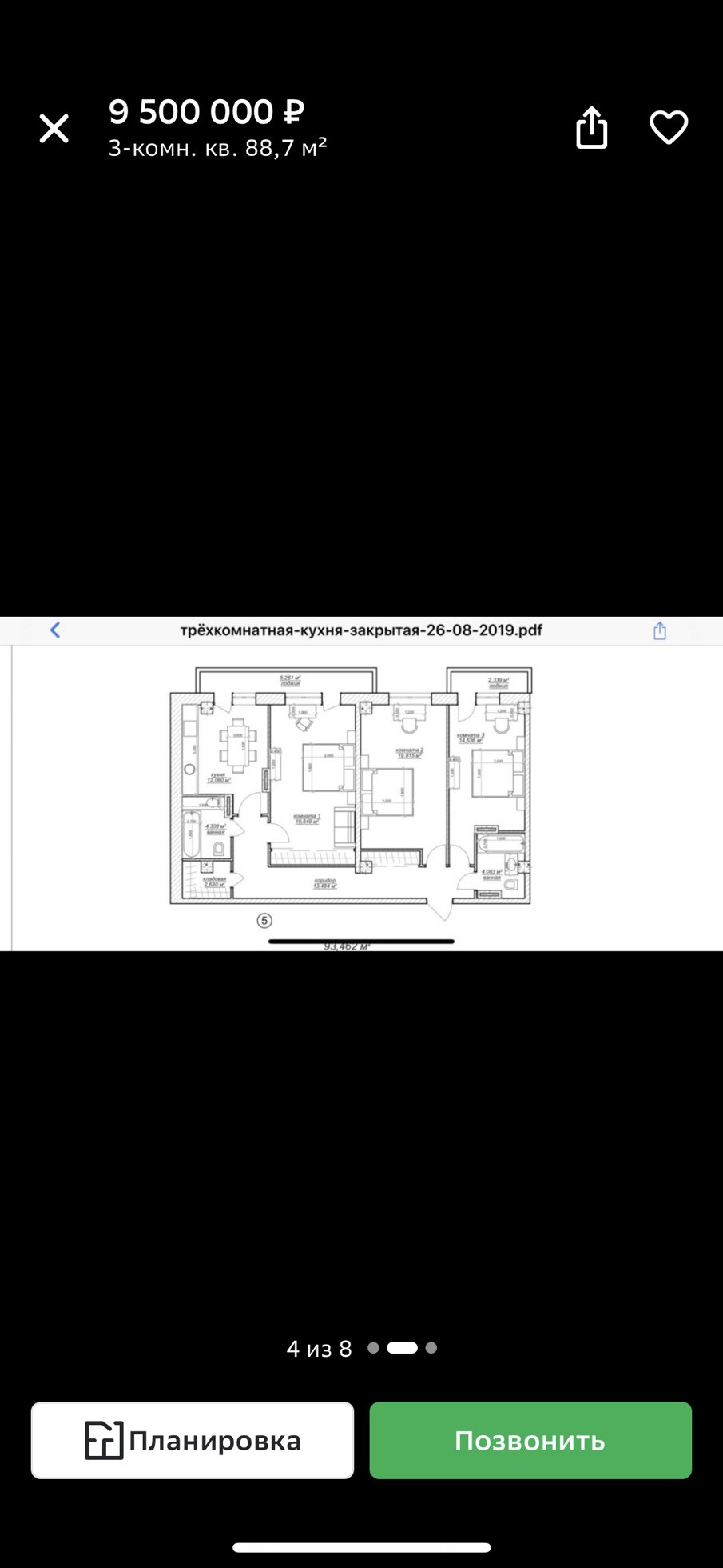 Общая площадь 88.3 м2