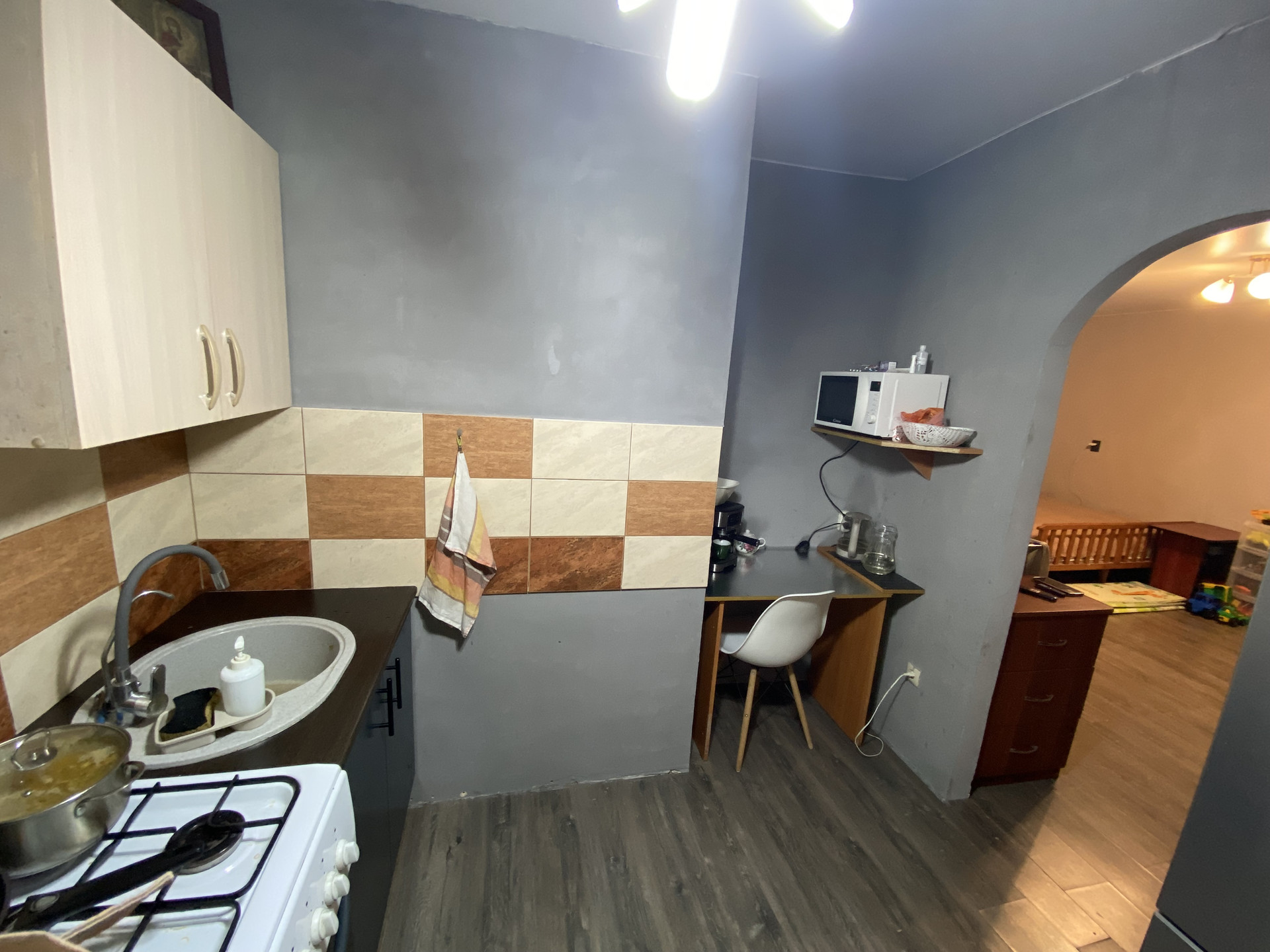 Квартира очень светлая и уютная, находится в середине дома на УДОБНОМ 1 этаже. Окна квартиры выходят НА ЗАДНИЙ ФАСАД ДОМА, поэтому будет тихо и спокойно. звуки домофона и голоса входящих жильцов не будет слышно.