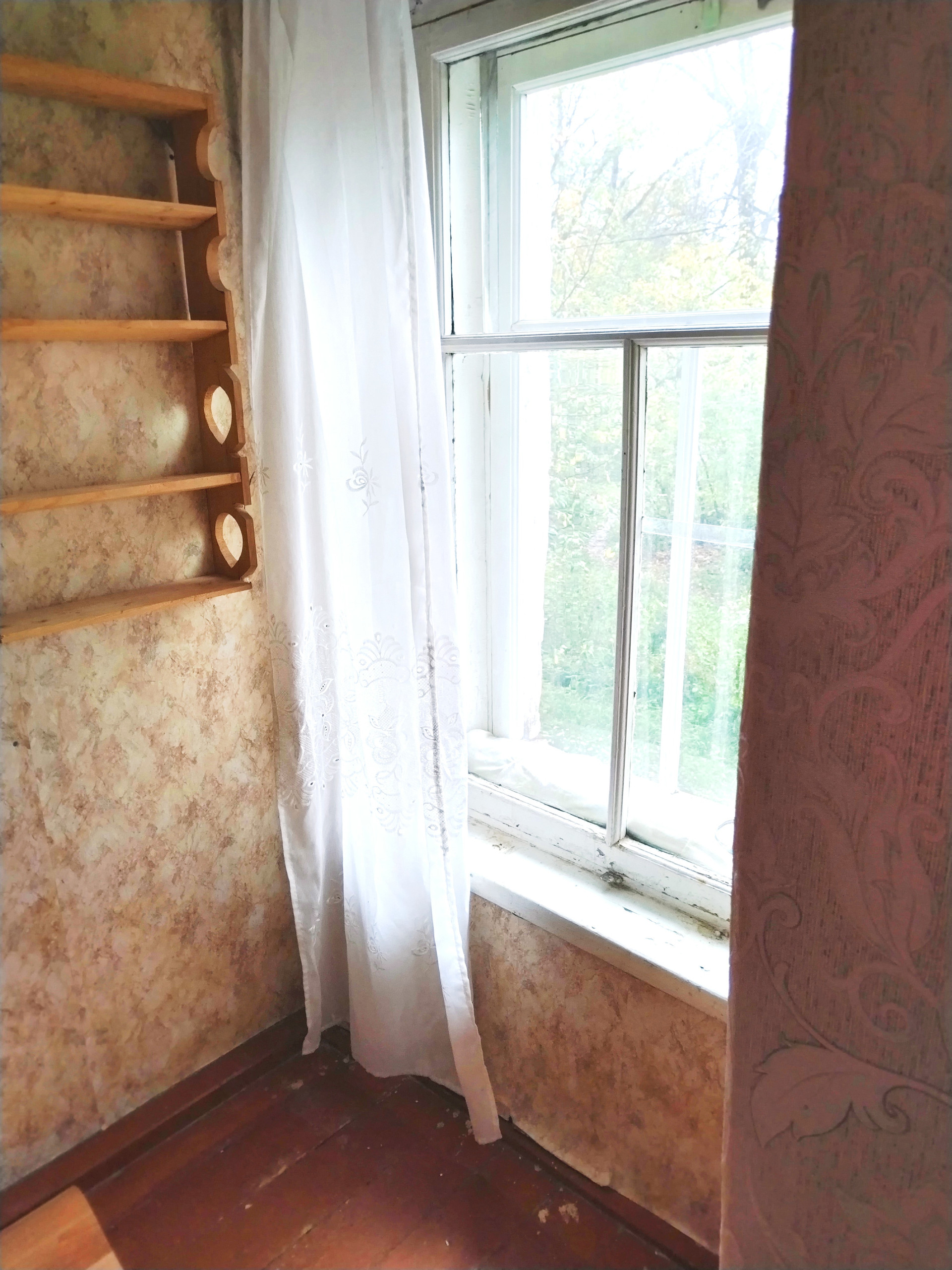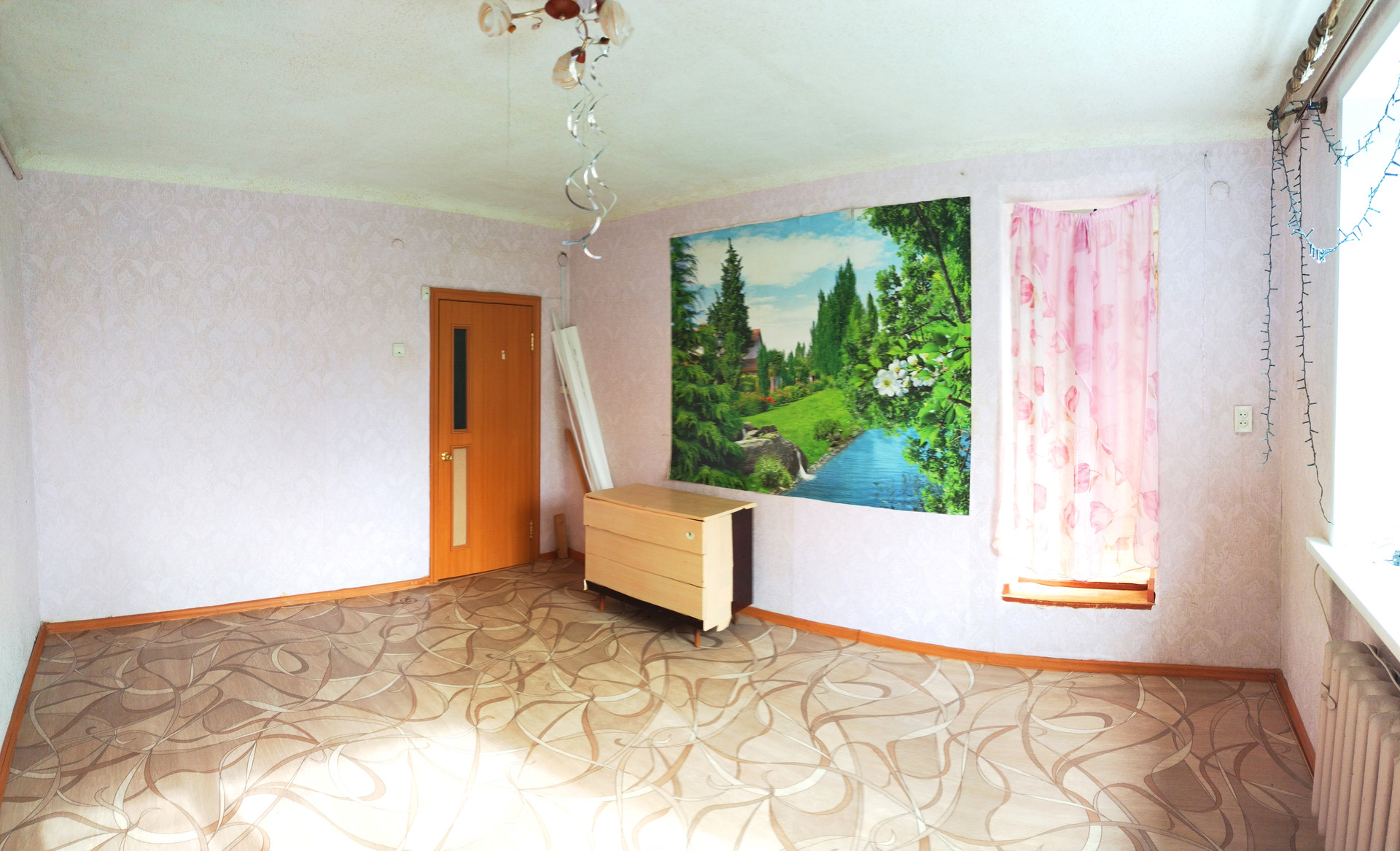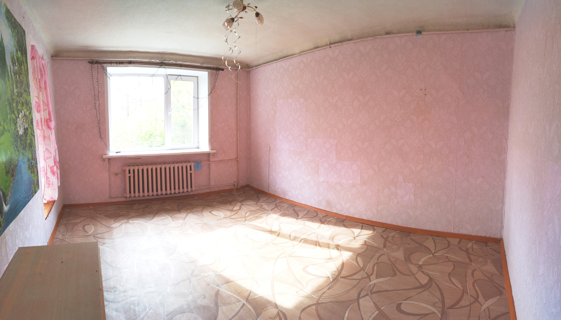 4 окна (по два на обе стороны дома) прекрасный вид на зелень. Стеклопакеты на больших окнах. На полу крепкий линолеум. При желании можно поставить балкон - окно над подъездом позволяет это сделать без перепланировки!