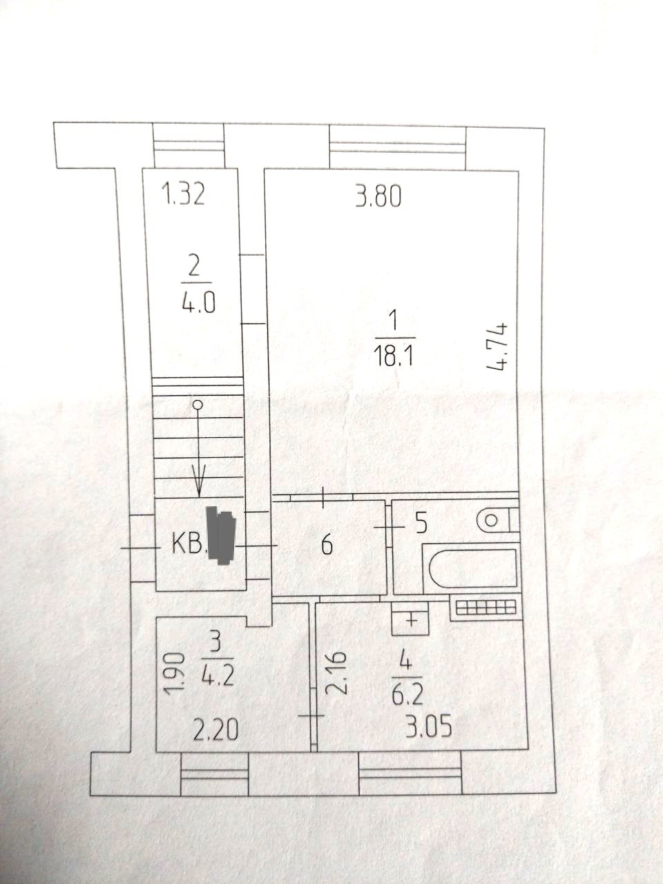 Общая площадь 37.7 м2