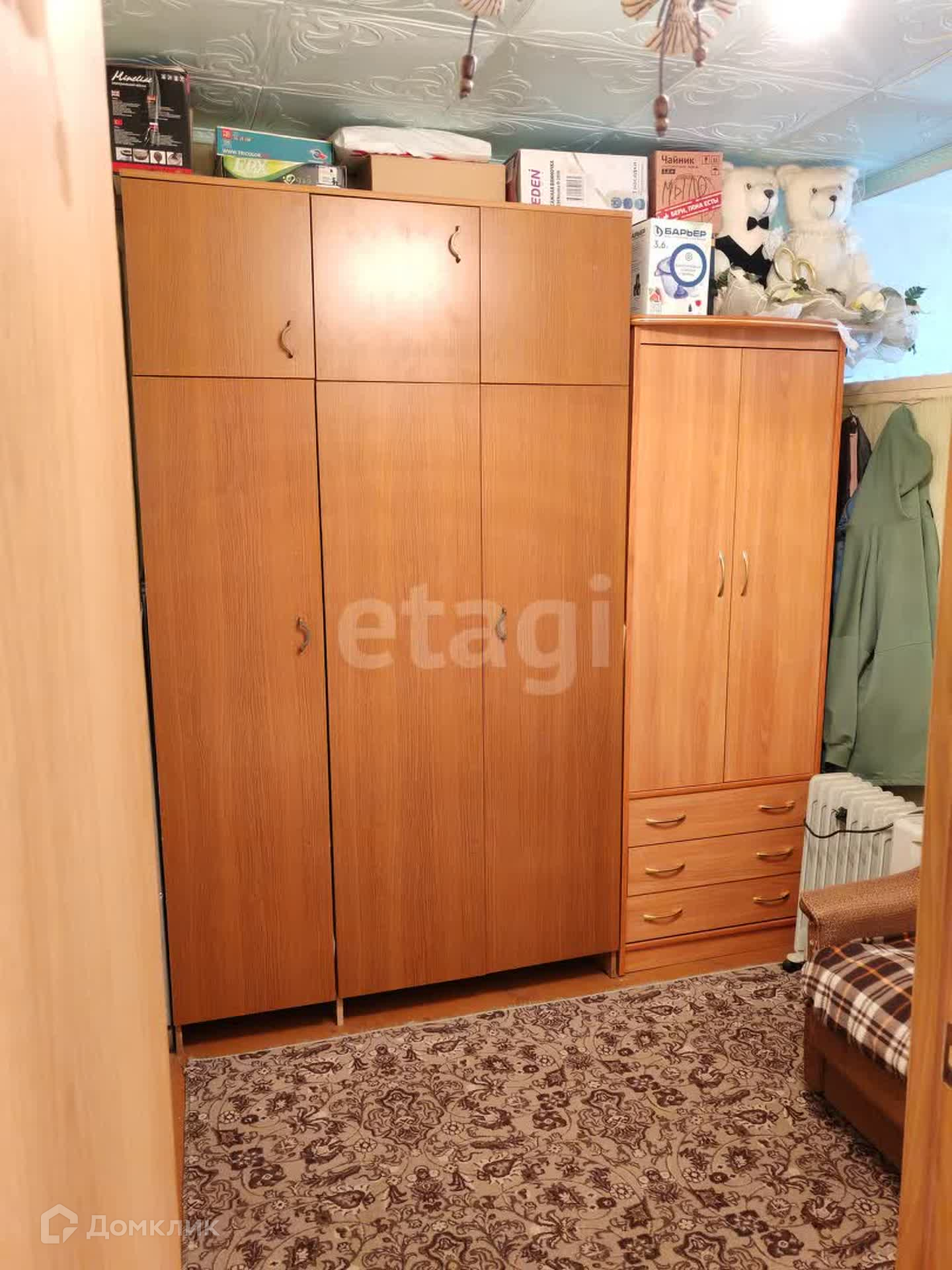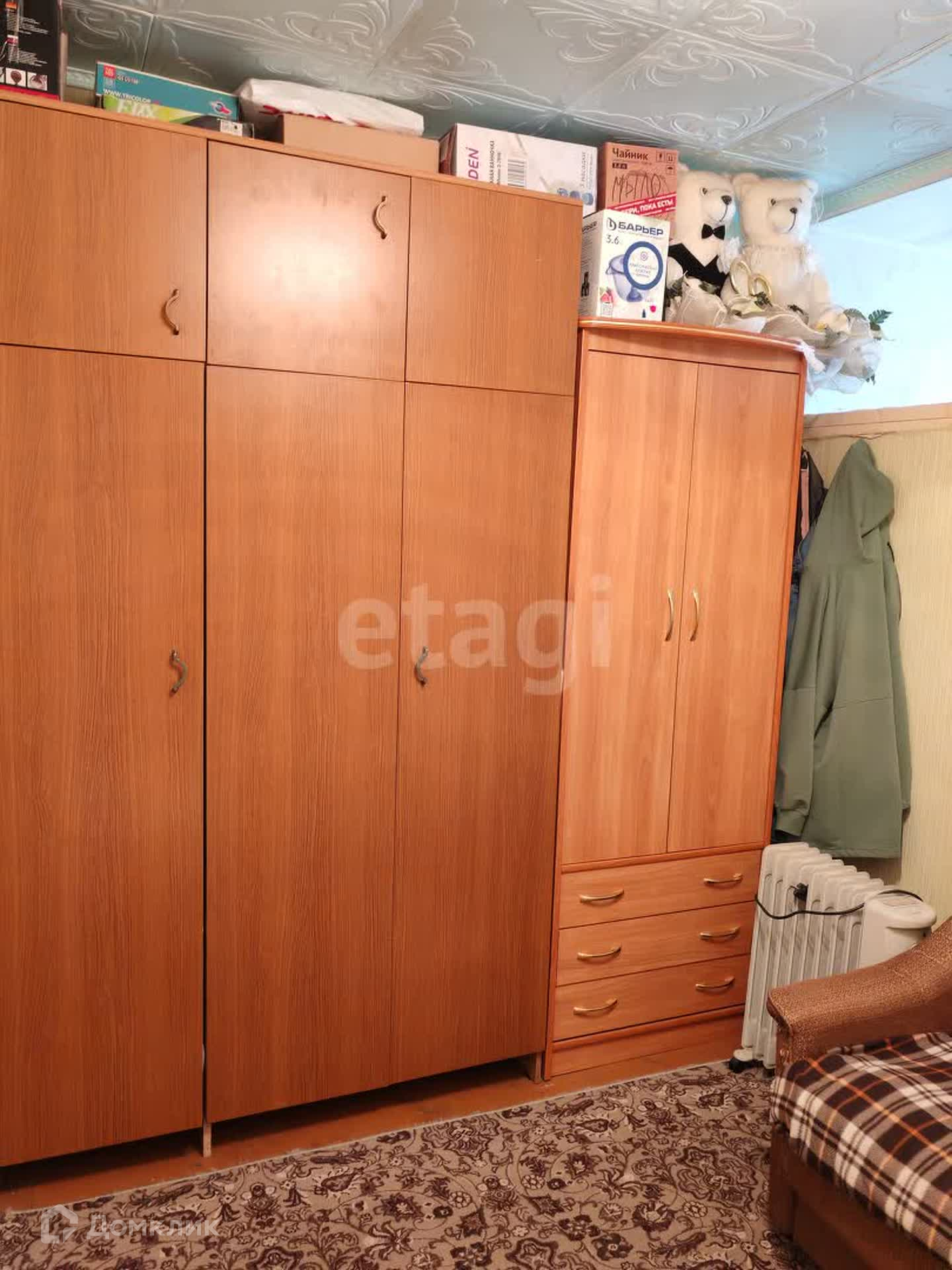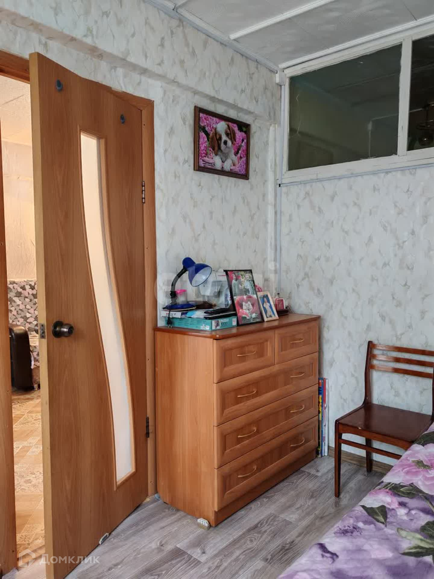 Окна стеклопакеты, на полу линолеум, есть вместительная гардеробная.