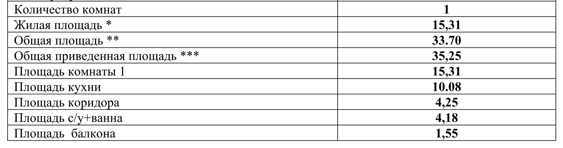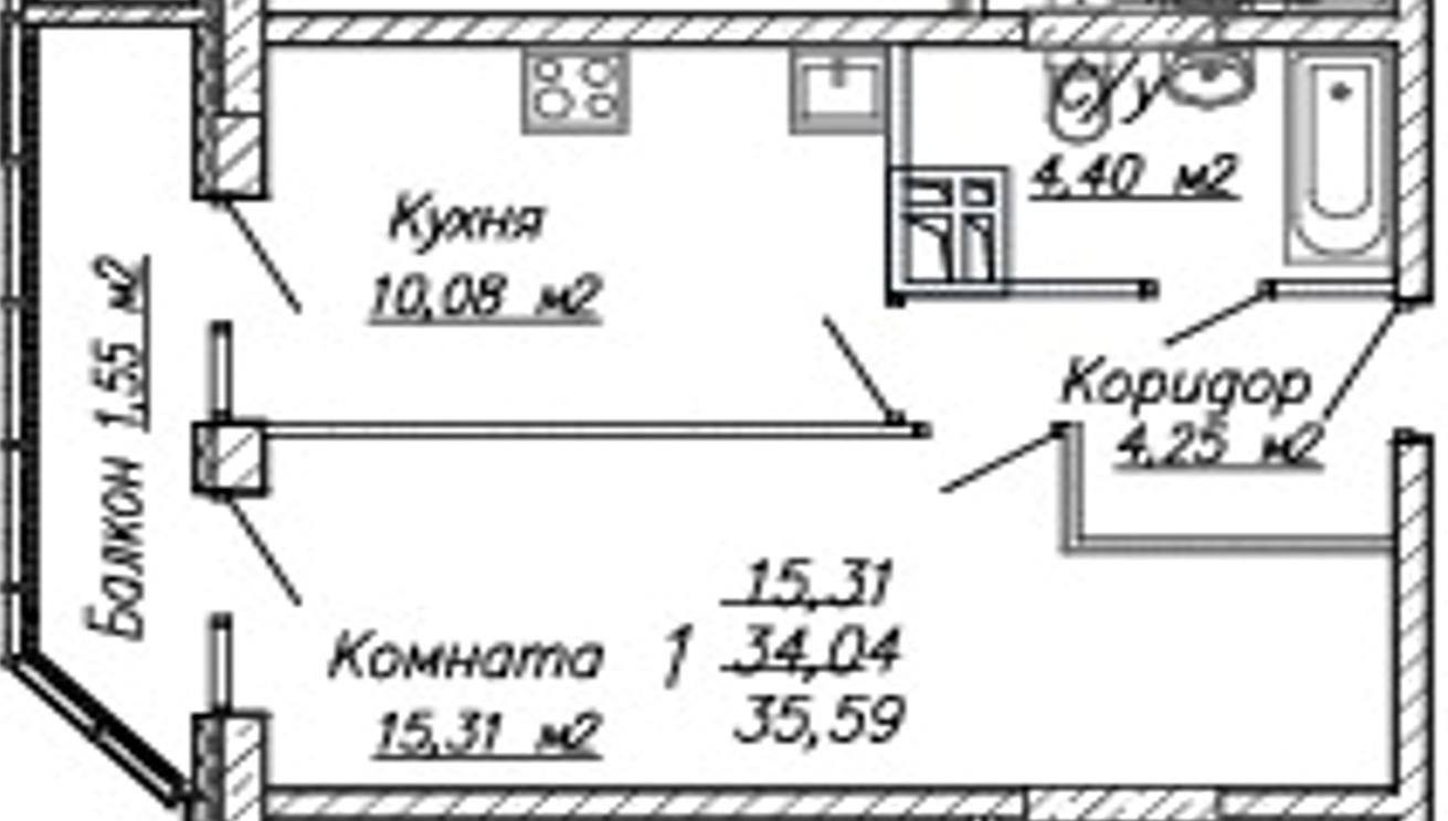 Общая площадь 33.5 м2
