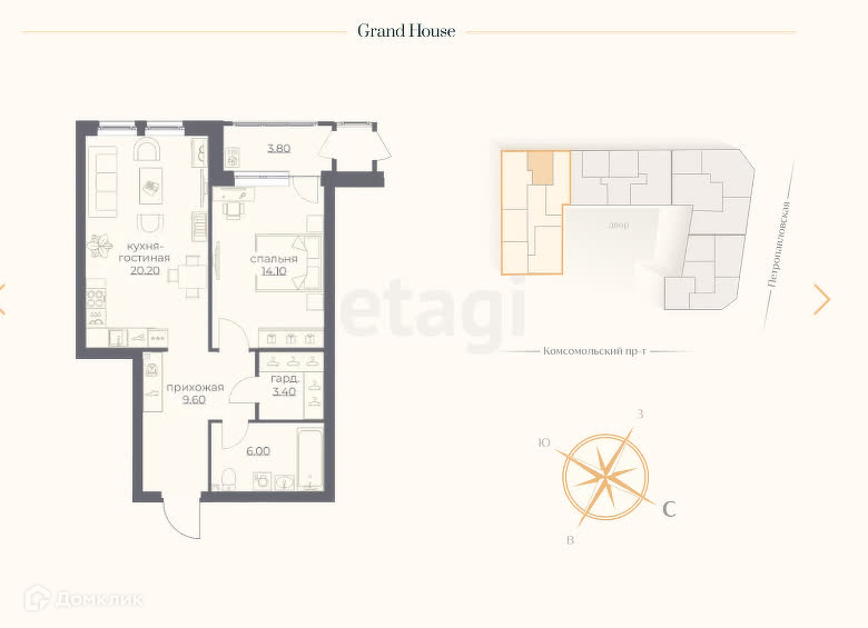Доп. описание: санузел совмещенный, пластиковые окна, в доме есть: детская площадка, открытый двор, подземный паркинг, лифт грузовой, улучшенная черновая отделка, также имеются: телефон, интернет, кабельное телевидение, счетчики холодной и горячей воды, домофон, железная дверь,