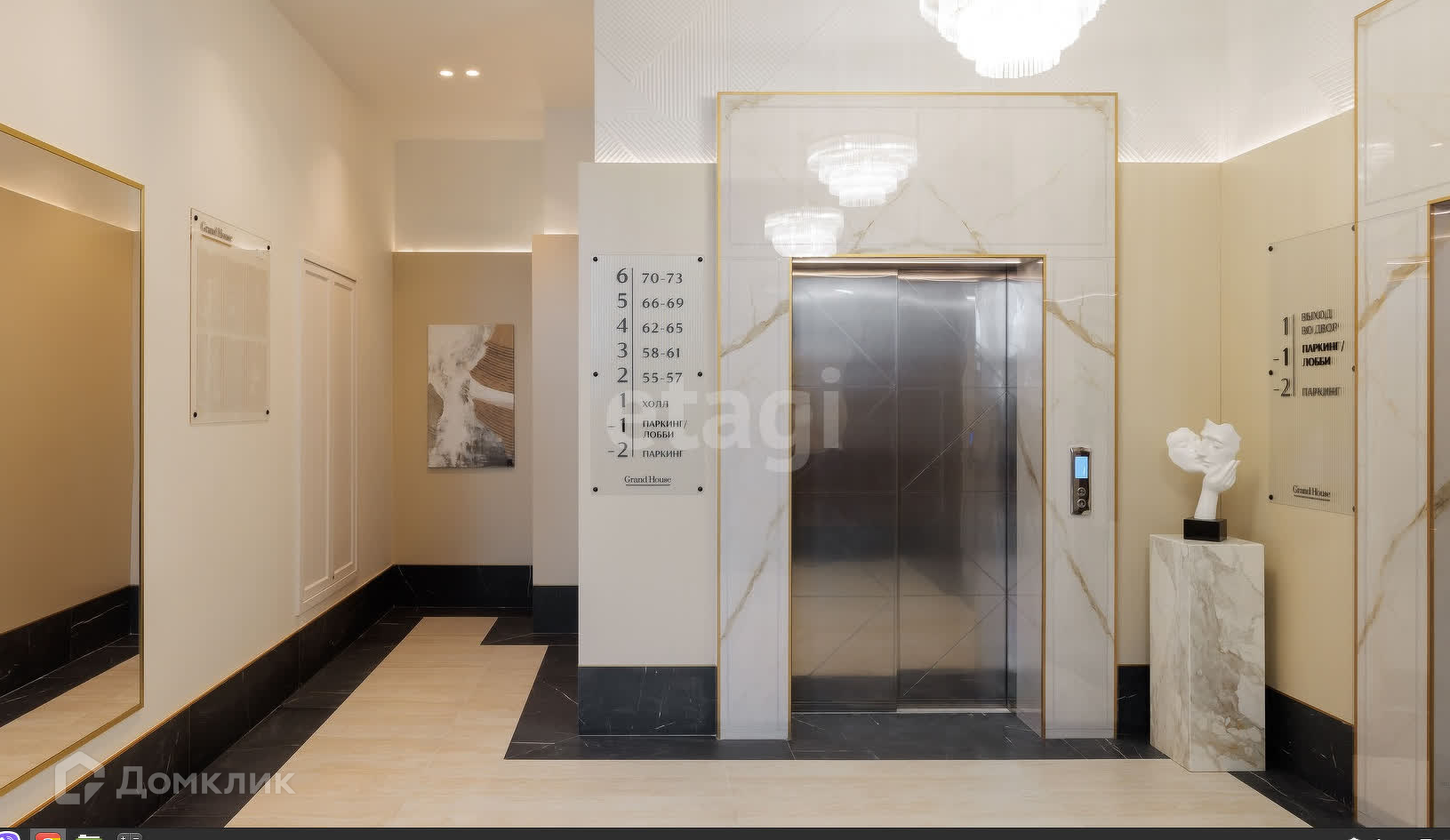 Лобби с консьерж-сервисом, мебелью из натуральных материалов, благородной, по-дворцовому, изящной отделкой. Внутри – статусная обстановка, помещения для детских колясок, велосипедов и самокатов, а также санузлы.